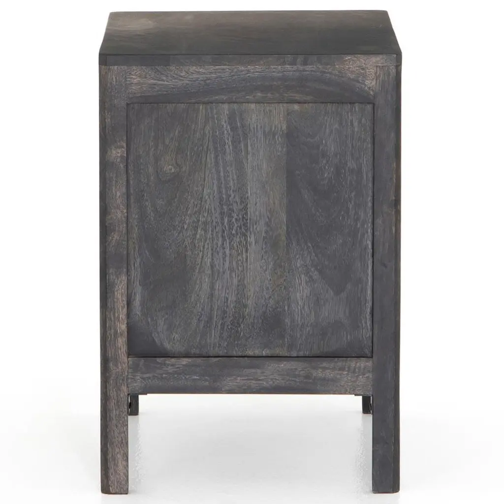 The right-facing Rhian nightstand adds coastal elegance to any bedroom with its blackwashed mango wood frame, natural mango wood door front, and natural woven cane inlay. This nightstand features a roomy interior and a removable shelf, offering multiple bedside storage options all within arm’s reach. Functional details like a magnetic closure and soft-close hinges are the cherry on top.