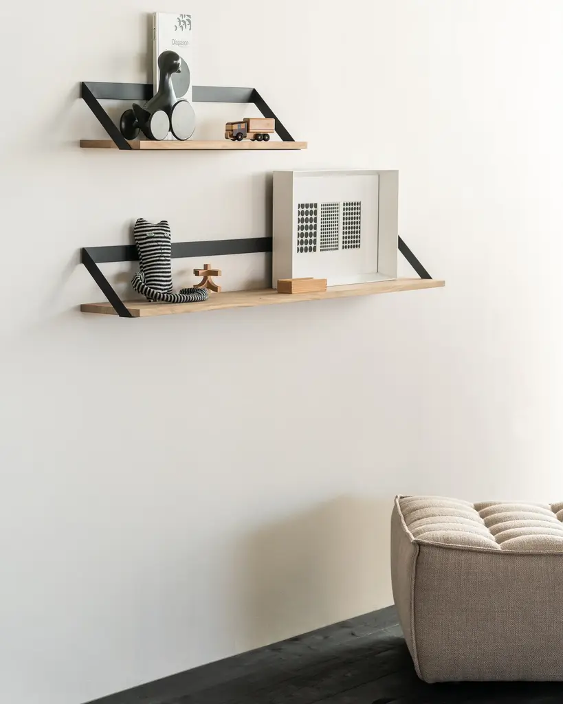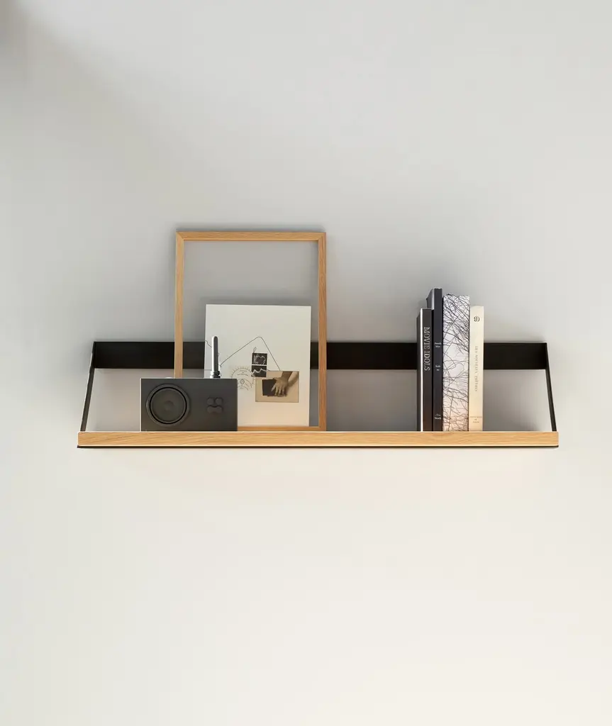 The ribbon shelf by Studio Kaschkasch impresses through its simplicity. It’s a free and easy shelf combining beautiful oak wood and a metal hanging system. Whether you hang only 1 or a dozen, this functional shelf is compatible in so many different interiors due to its accessible look.