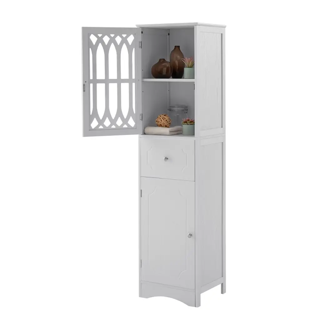 Ridstar 63.8 In. H White Bathroom Storage Cabinet With Doors And Drawer, Adjustable Shelf
