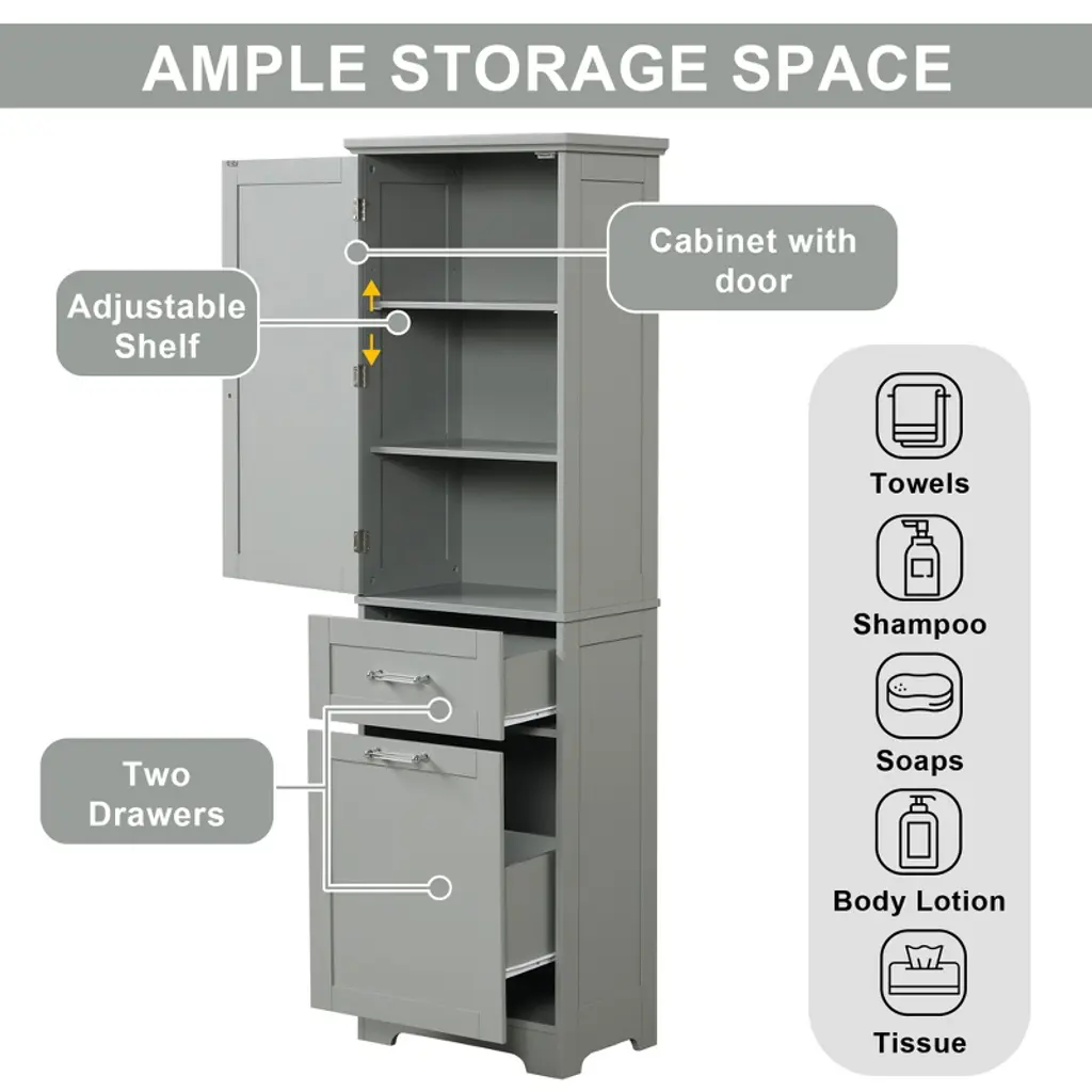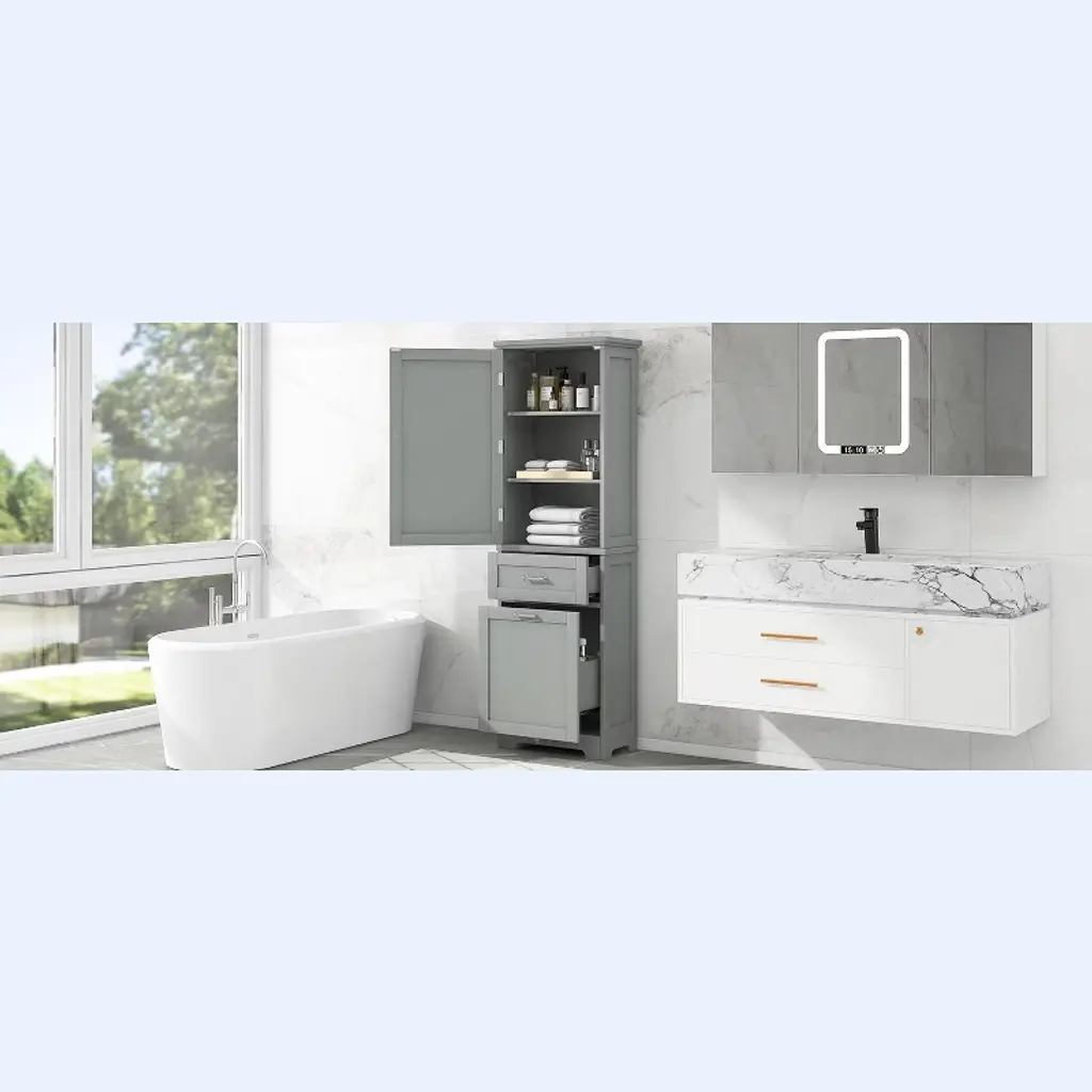 Ridstar 68.4 In. H Grey Bathroom Storage Cabinet With Drawer And Adjustable Shelf