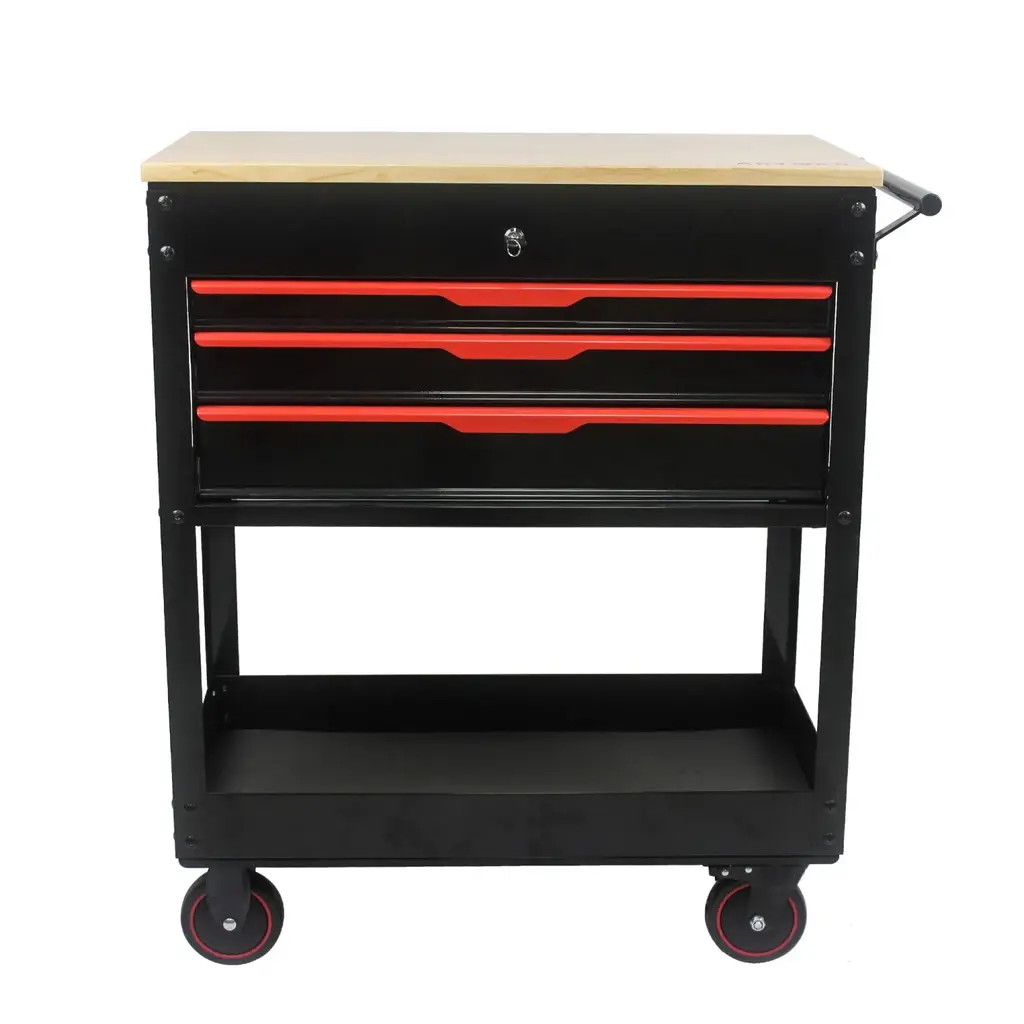 Material: Durable-Constructed of material for enhanced strength,can be used to transport some light tools and parts. Practical Tool: Convenient and utility shelves allow for easy transportation of supplies, tools and loads. And the beautiful appearance that's easy to clean. Large Capacity: 4-layer multi-functional drawer, each drawer features help store items safely inside. 4 Casters: Equipped with 4 rotating wheel for easy operation, smooth rolling, and safe placement. Application: Large garage organizer cart with adjustable shelf is perfect used for warehouse, workshop. Description: Name: Tool Cart Main Color: Black+Blue Main Material: Metal Packing list: 4-Drawer Multi-Functional Wheeled Tool Cart With Wooden Top x 1 Accessory Bag x 1