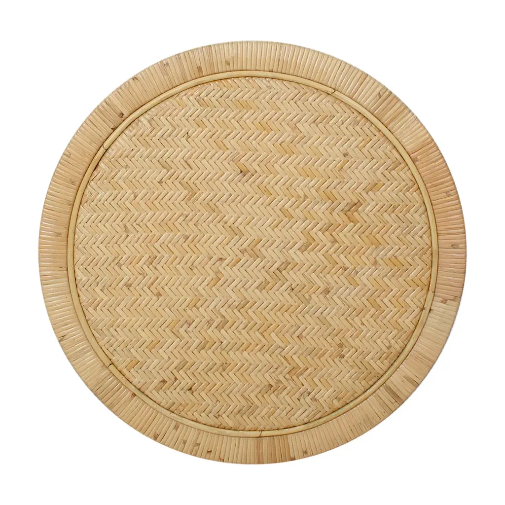 Round Natural Rattan Side Table With Shelf