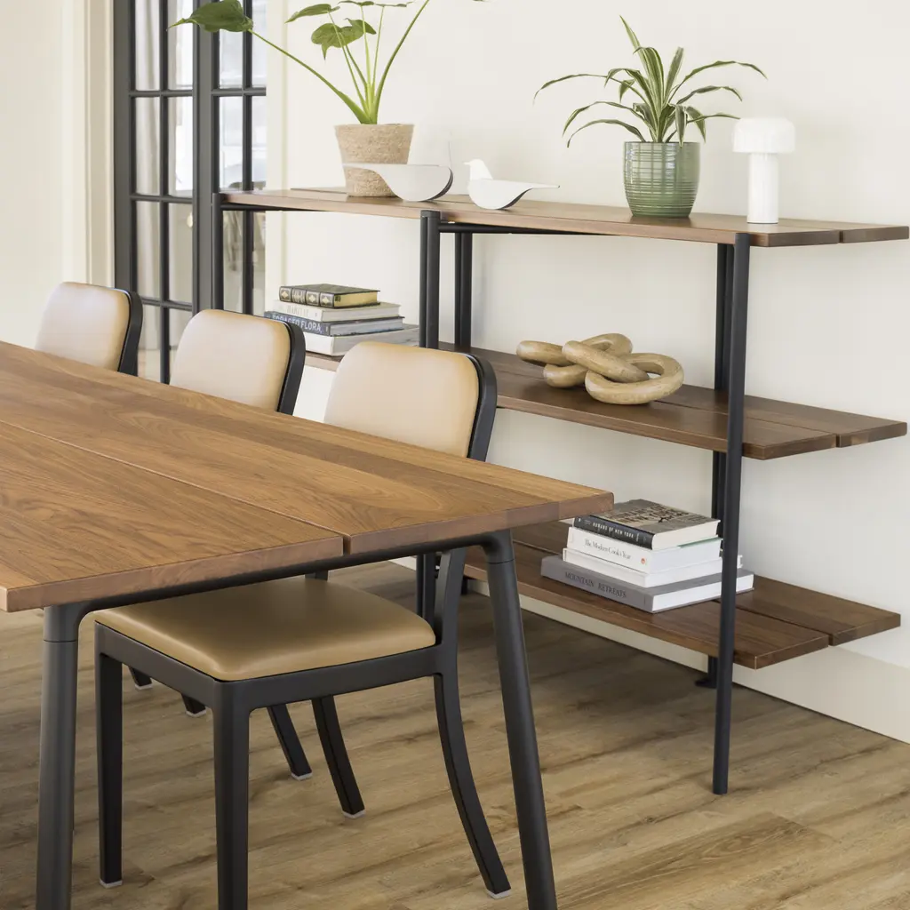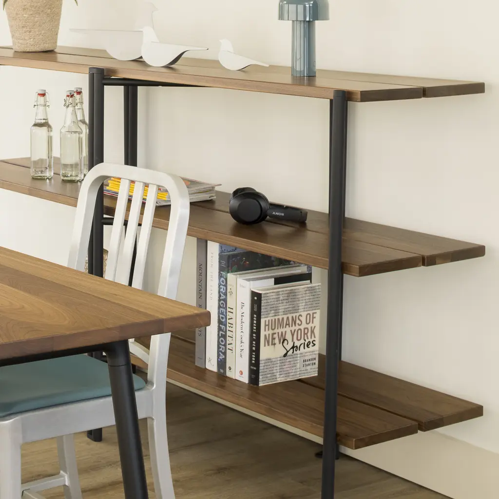 The Run shelves, a product of the visionary design duo Sam Hecht and Kim Colin, are a prime example of their commitment to simplicity and functionality. Constructed from responsibly selected, sustainable wood and recycled aluminum, the Run shelves embody a sustainable ethos that aligns with contemporary environmental values. What sets the Run shelves apart is their versatility. They are equally at home in residential settings, adding a touch of modern elegance to your living space, as they are in hospitality and workplace environments, where their sleek design can elevate any interior. The adaptability of these shelves makes them a perfect choice for various uses, from displaying art and decor to organizing books and office supplies.