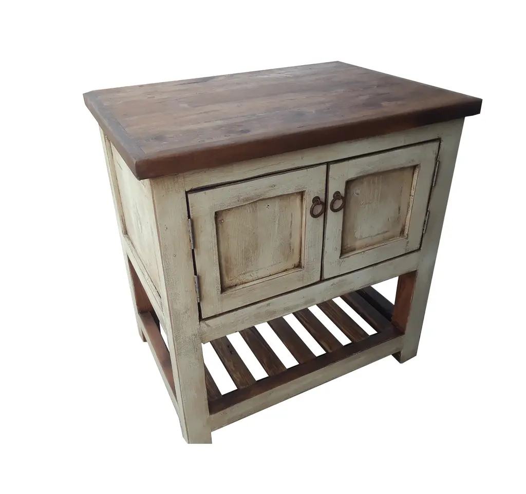 A beautiful old wood vanity hand crafted from 100% old wood from Mexico. The old wood has a lot of characteristics. The bottom shelf has Plenty of space for toiletries. The wood is hand rubbed with paste wax. The top has been sealed to protect the wood from water damage.If you need any other color we can make the changes at no extra cost. Message me if you need different measurements or color.Please expect some imperfections in the wood for it is recycled wood from BarnsThe vanity shown measures30"W x 20"D x 32"T