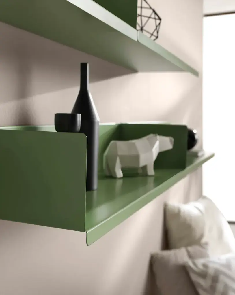 Sabrina is a shelf in powder coated steel to be fixed to the wall. The design is elegant and contemporary at the same time. The Sabrina collection includes 3 different types, divided into 3 lengths (40-60-80 cm) to better adapt to the space or the needs of the users.Strength and stability is given by the simple wall fixing system, simplified by a hanging bar to which Sabrina attaches.The strong point is the possibility to adapt to different places in the home or community: it can be placed at the entrance, in a bathroom, in the kitchen or in the children bedrooms. Not only that, but by combining several shelves together, one next to the other divided by the side panel, you can create magnificent hanging bookcases that are very suitable for passageways, such as corridors. It is possible to choose between 18 RAL colors and 2 metallic colors (Oro/Gold and Rame/Copper) from the color range 2020.Material:SteelFinishing:mat powder coating finishingMaintenance suggestions:Use only clean water, with slight additives of neutral washing agents (pH 7), is to be used with the aid of soft, non-abrasive cloths, rags or industrial cotton. Strong rubbing is not to be undertaken.Technical characteristics:-Steel sheet thickness: 1,5 mm-Fixing kit with hanging support bar included in the shipment-Easy mountingUseful information for your purchase: It is suggested to purchase more shelves to create beautiful hanging bookcases.
