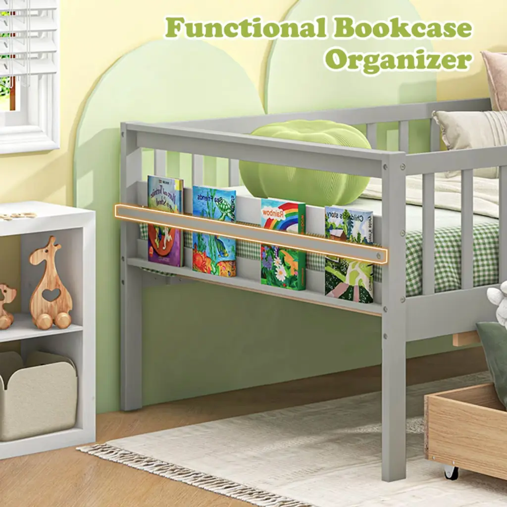 Safstar Twin Size Kids Bed W/storage 2 Pull-out Drawers Side Shelf For Children & Teens