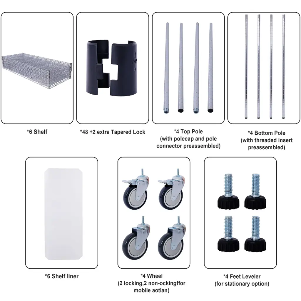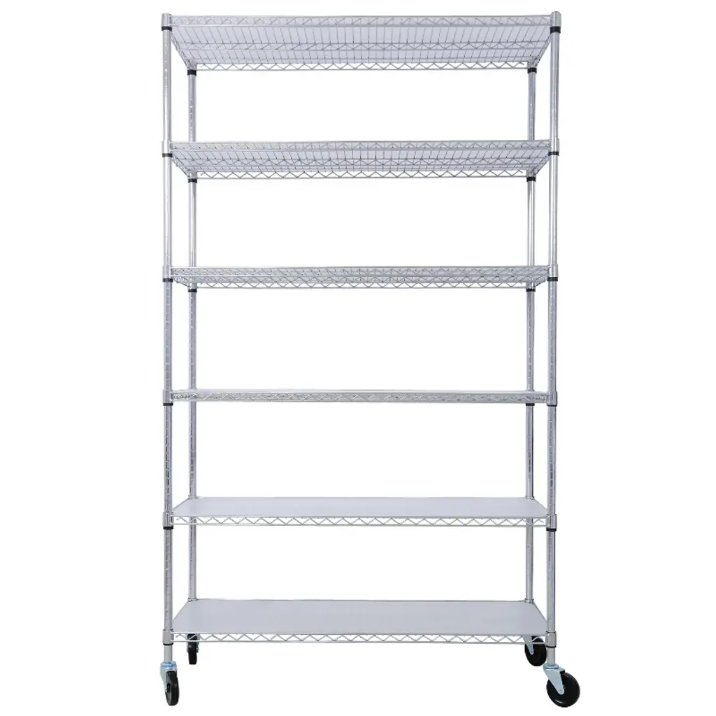 Sapphtopaz 6-tier Metal Storage Rack With Wheels & Shelf Liners Adjustable Heavy Duty Garage Shelves, Utility Wire Rack For Warehouses, 6000lbs,chrome