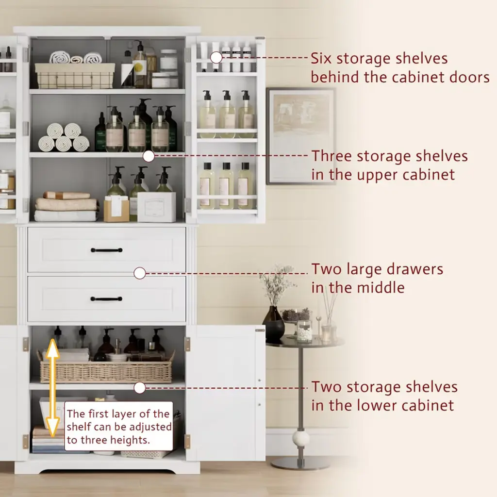 Sapphtopaz Storage Cabinet With Multi-functional Storage,bathroom Cabinet With 2 Drawers And Adjustable Shelf,tall Cabinet For Bathroom,kitchen,white