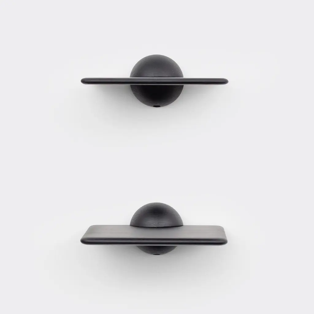The half sphere holding the plane contributes to a bold yet minimal look that works well in several different spaces and environments. Whether used as a shelf for an extraordinary object, as a bedside table or as a small bar table it's present with its distinct form without taking over. The Klot 30 side table provides endless types of usage.