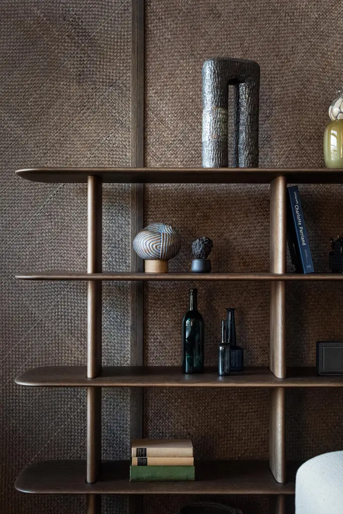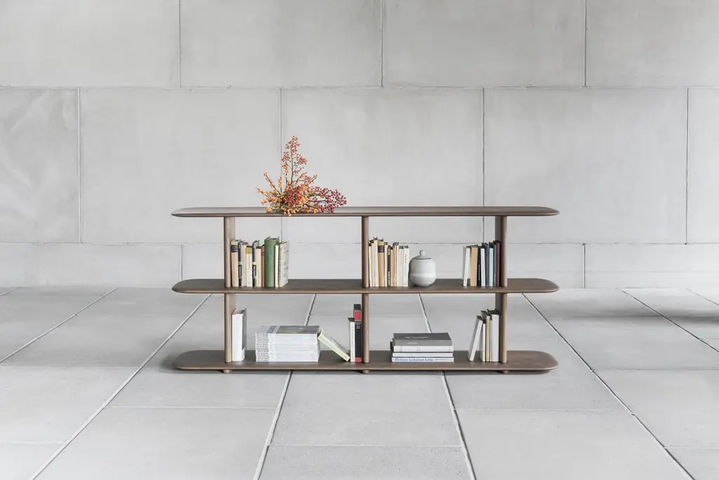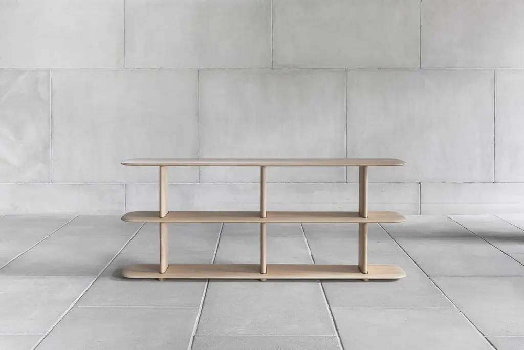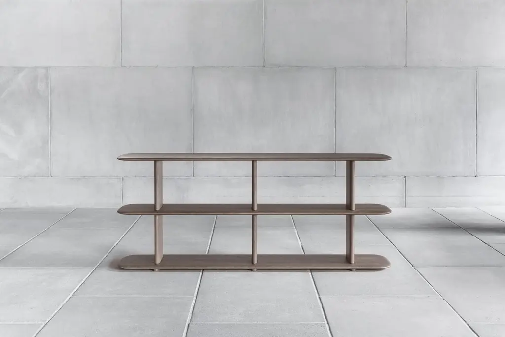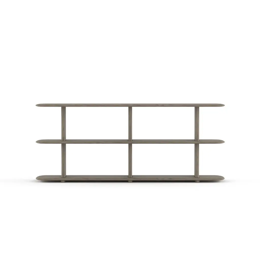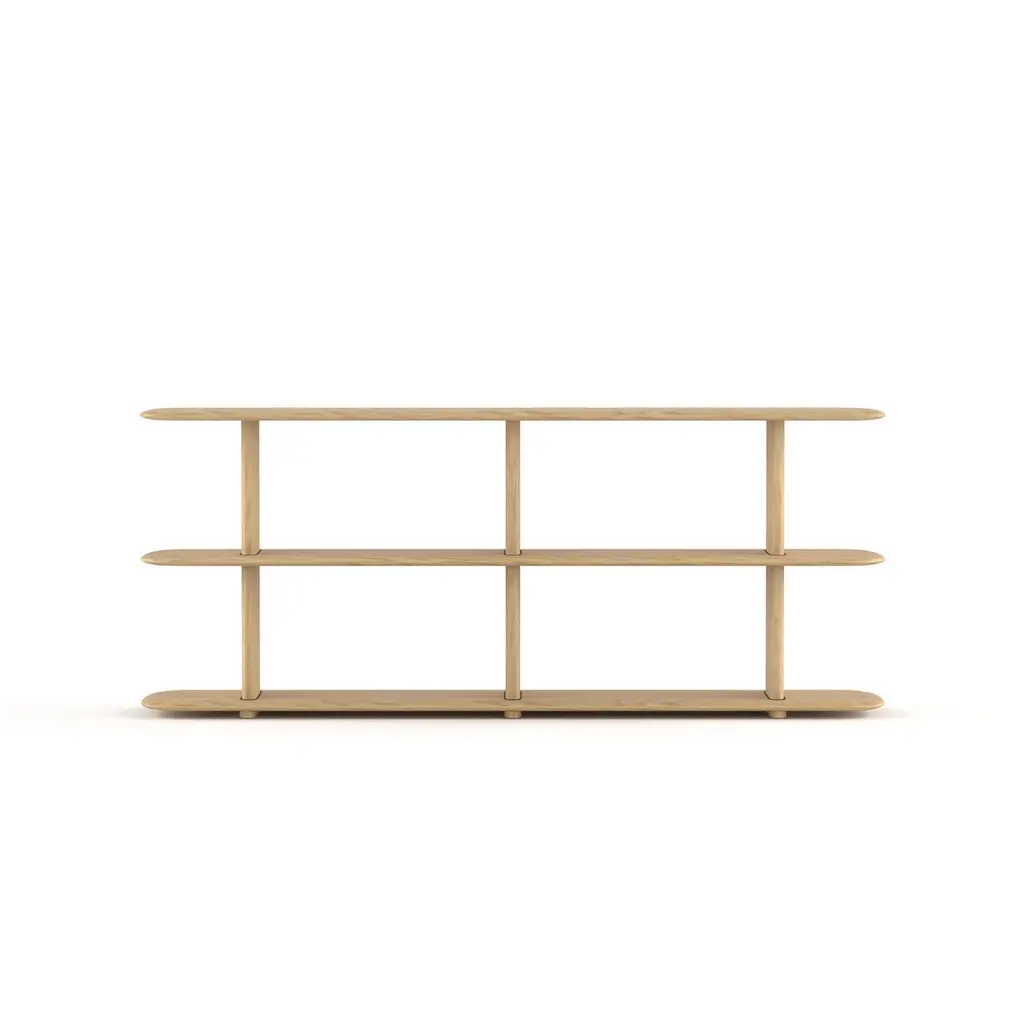 Shelf 'Poeme' designed by Timo Mikkonen & Antti Rouhunkoski for Poiat StudioDimensions : W. 181 x H. 74 x D. 37.5 cmModel shown :- Color dark oak ----Graceful and poetic, yet robust, the Poeme Shelf comes in four different sizes, offering a flexible solution for diverse display and storage needs, including, for example, as a bookshelf, a TV stand or simply a frame for beautiful objects.Featuring a modular and minimal design, the Poeme Shelves are well-suited for both public and private spaces. The free-standing shelves are manufactured from solid oak in Finland and come in three colour variations — oak, dark oak, and black.The free-standing shelves are manufactured from solid oak in Finland.The founders Timo Mikkonen and Antti Rouhunkoski’s design philosophy builds on the following principle. To base all their creations on a profound interest in the details and a strong commitment to one’s vision that together create an enduring ambience with elegance and some modern quaintness.