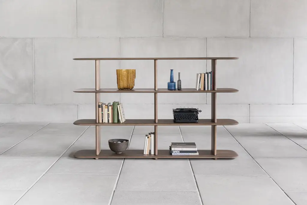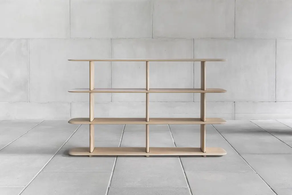 Shelf 'Poeme' designed by Timo Mikkonen & Antti Rouhunkoski for Poiat StudioDimensions : W. 181 x H. 109 x D. 37.5 cmModel shown :- Natural oak -----Graceful and poetic, yet robust, the Poeme Shelf comes in four different sizes, offering a flexible solution for diverse display and storage needs, including, for example, as a bookshelf, a TV stand or simply a frame for beautiful objects.Featuring a modular and minimal design, the Poeme Shelves are well-suited for both public and private spaces. The free-standing shelves are manufactured from solid oak in Finland and come in three colour variations — oak, dark oak, and black.The free-standing shelves are manufactured from solid oak in Finland.The founders Timo Mikkonen and Antti Rouhunkoski’s design philosophy builds on the following principle. To base all their creations on a profound interest in the details and a strong commitment to one’s vision that together create an enduring ambience with elegance and some modern quaintness.