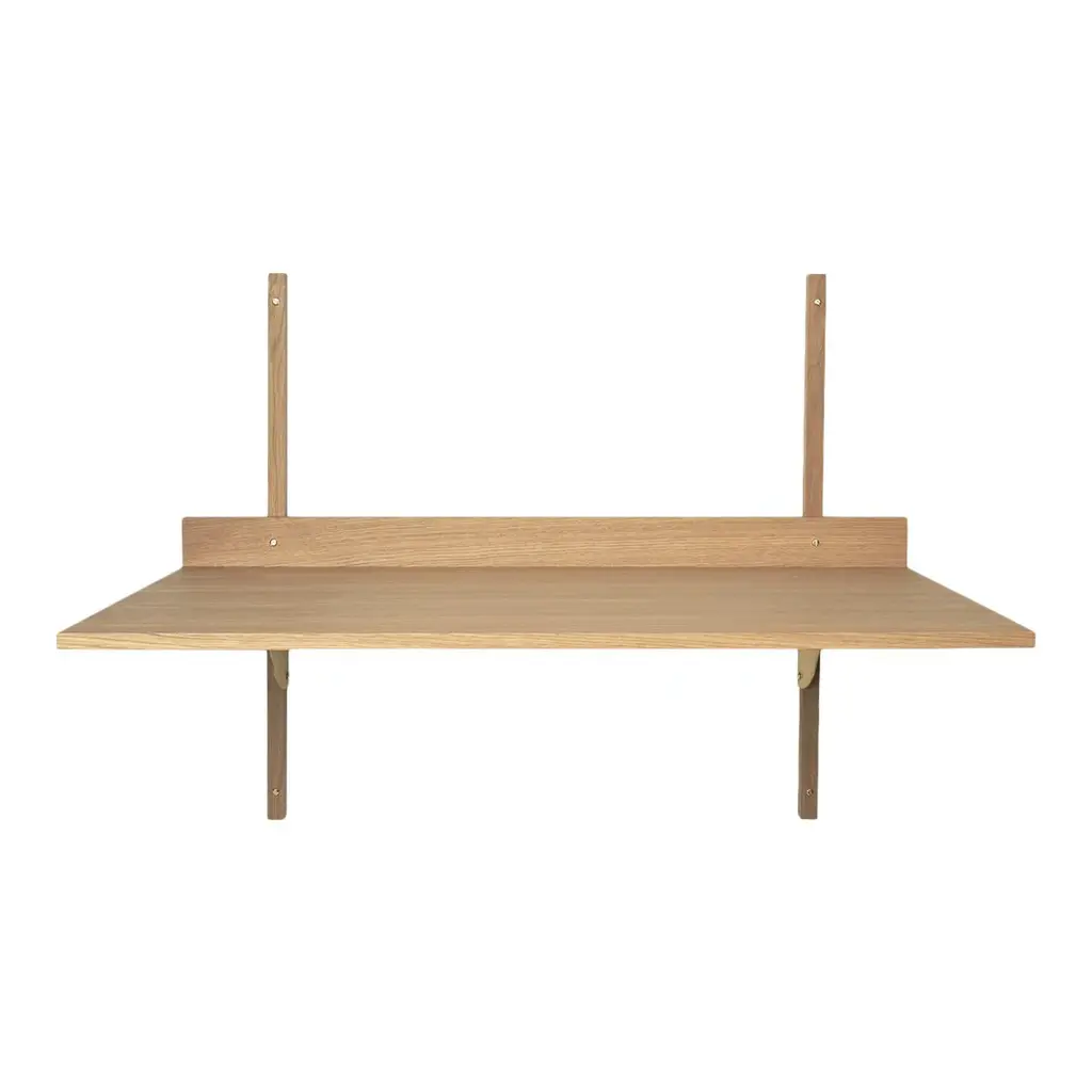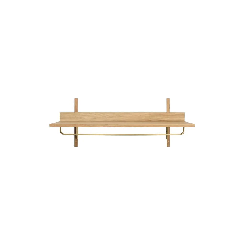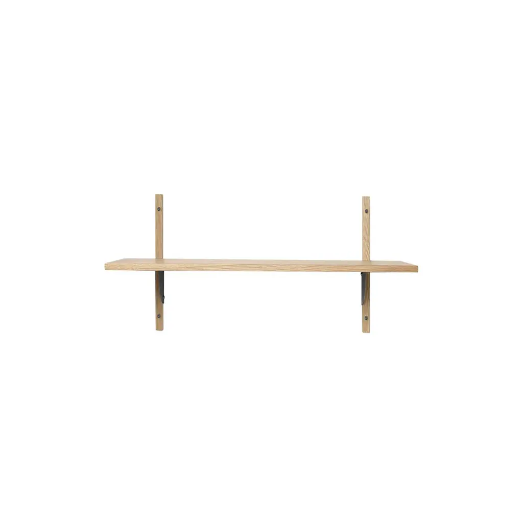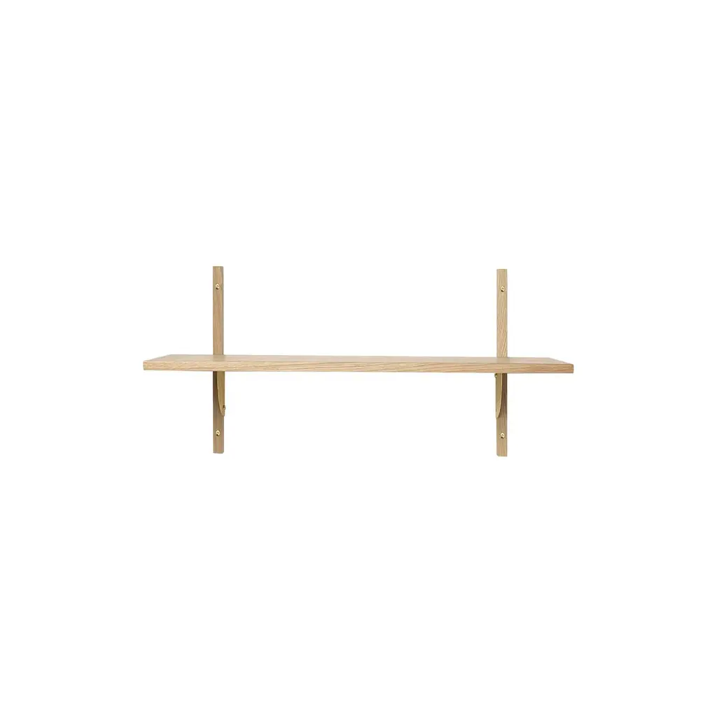 Sector calls to mind midcentury wall-hung shelves but Ferm Living's contemporary take on the storage concept adds a chic brass element. Defined by a sturdy but stylish simplicity, the shelves attach to a wall with the accompanying solid-wood uprights using visible screws. Available in 2 widths and either single- or triple-shelf units, choose from natural oak veneer or black-stained ash veneer shelves to pair with either polished or blackened brass brackets.