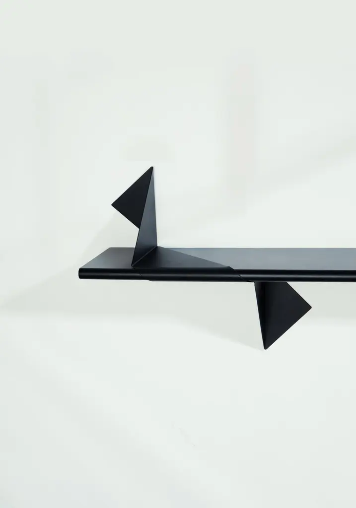 Set of 2 Oïrigami Shelf by Atelier oïDimensions: W 180 x D27.5 x H 54.5 cmMaterials: Walnut Finish Board, Black Or Grigio Peltro, Powder-Coated Metal SupportsOïrigami shelves take their name from this ancestral Japanese art of folding. What could be more natural for these everyday allies, who bend to the needs of their user while bringing them a welcome touch of poetry and lightness.Atelier oï was established in 1991, in La Neuveville, Switzerland, by architects and designers Aurel Aebi, Armand Louis and Patrick Reymond. For over 20 years, atelier oï has striven to dissolve barriers between genres and foster crossdisciplinary creativity. Over the course of their achievements, architecture, design and set design have intertwined on an international scale. Crossdisciplinarity, team spirit and an intimate approach to the material are their watchwords. Therefore, experimenting is an essential aspect of atelier oï ’s approach: the objects often stem from an intuitive and emotional interaction with the material. In addition to experimentations, cultural exchanges and events dedicated to their work, the studio create designs for prestigious brands such as Alias, Artemide, B&B Italia, Bulgari, Breguet, Chopard, Desalto, Foscarini, Louis Vuitton, Moroso, Nespresso, Parachilna, Passoni, Pringle of Scotland, Rimowa, Röthlisberger, Swatch, USM, Victorinox, Zanotta and many more. La Manufacture is a brand where design and fashion collide. A brand where a certain je ne sais quoi of French allure meets the best Italian craftsmanship. A certain idea of French lifestyle (re) interpreted by world-renowned international designers. Each collection will highlight worldclass craftsmanship, timeless aesthetics and enduring quality.