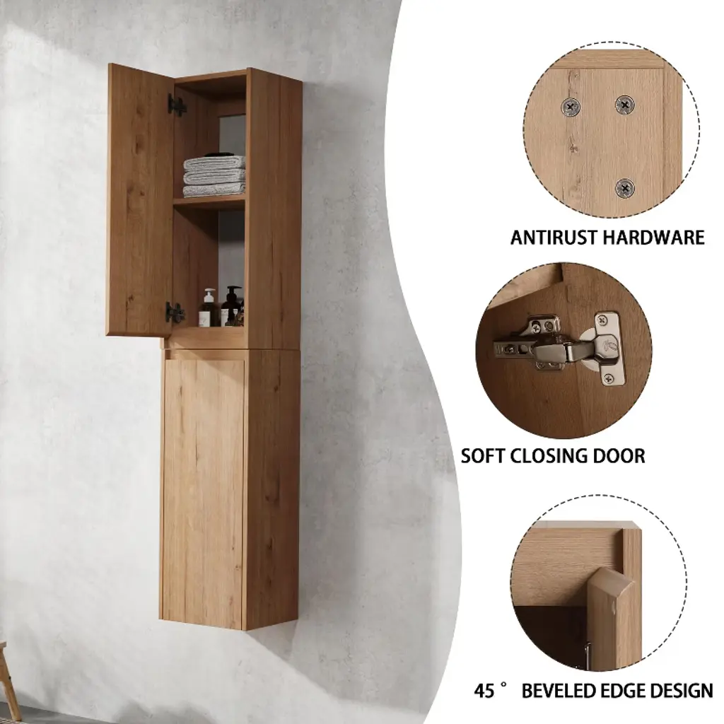 Sevobal Bathroom Storage Cabinets, Wall-mounted Vanities With Resin Sink And Two-story Open Shelf,separate Side Cabinet, 2 Floating Bathroom Cabinets