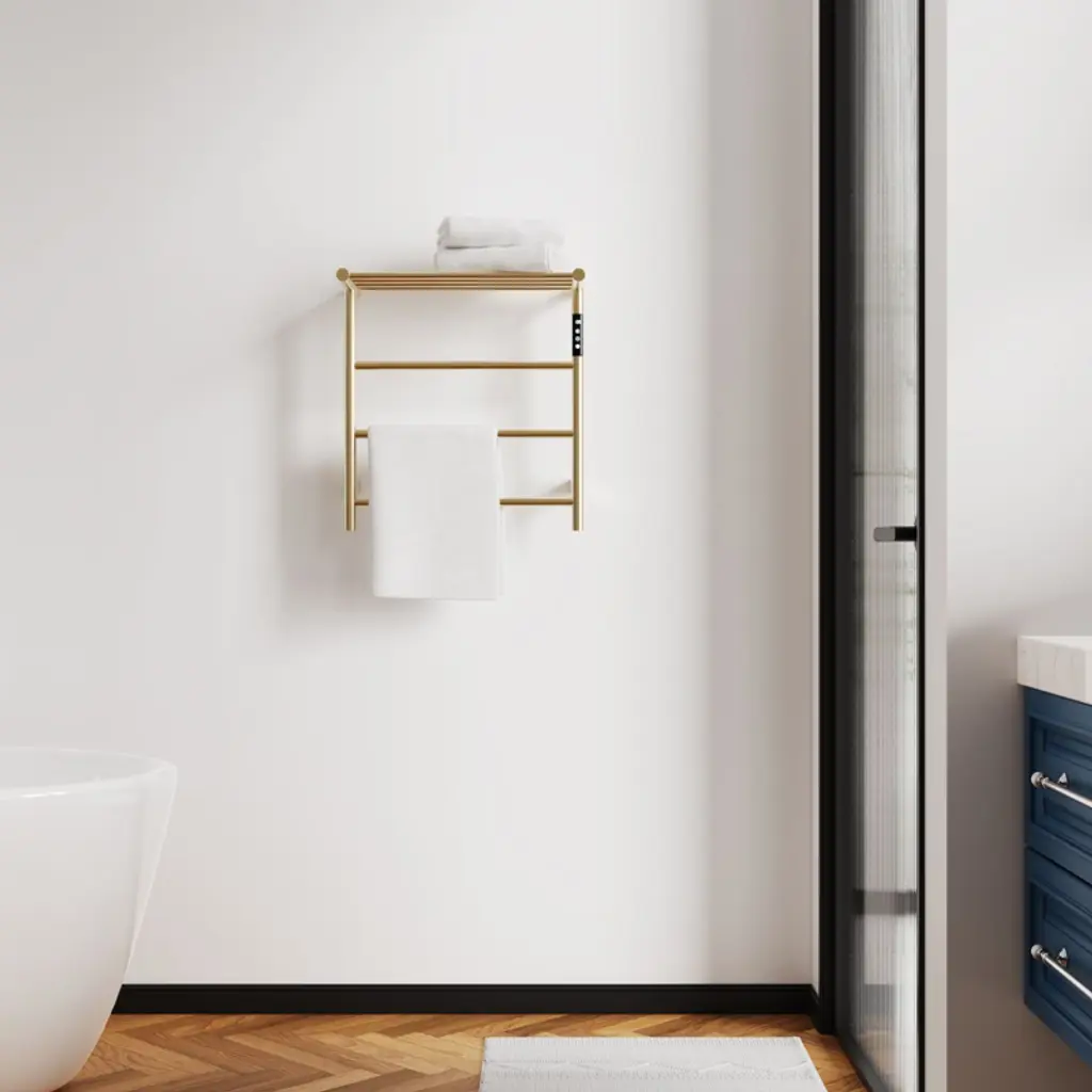 SEVOBAL Bathroom Towel Holders offers a heated towel rack with a top shelf that adds storage and expands the warming area for towels. This design keeps towels warm and dry while saving space in your bathroom or laundry room. Crafted from durable stainless steel the rack resists moisture and stays strong in humid environments. Easy to install with included hardware it fits various spaces and enhances daily comfort with adjustable heat settings.