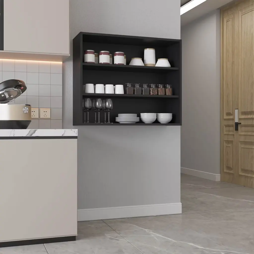 Sevobal Utility Storage Shelves Bookshelf Space-saving 3-tier Wall Shelf, Storage Solution For Kitchen, Living Room, Black, 37.01"*30.71"*3.54"