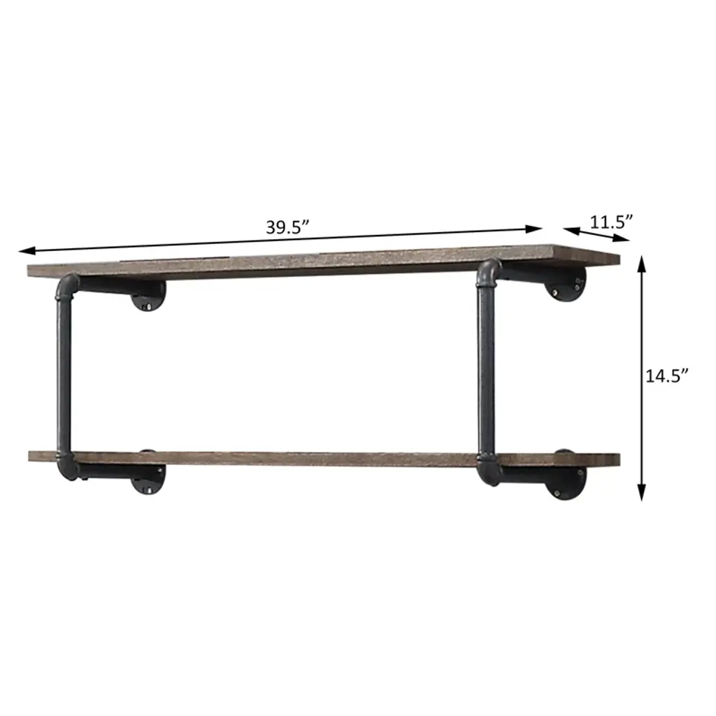 Sevobal Utility Storage Shelves Industrial 2 Tier Wall Shelf With Shelves And Metal Frame For Living Room, Natural Gray, 39.5"*11.5"*14.5"