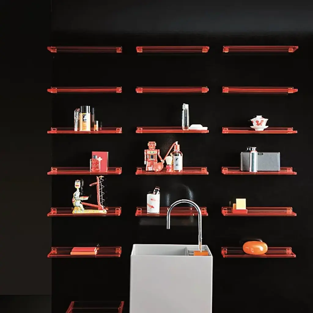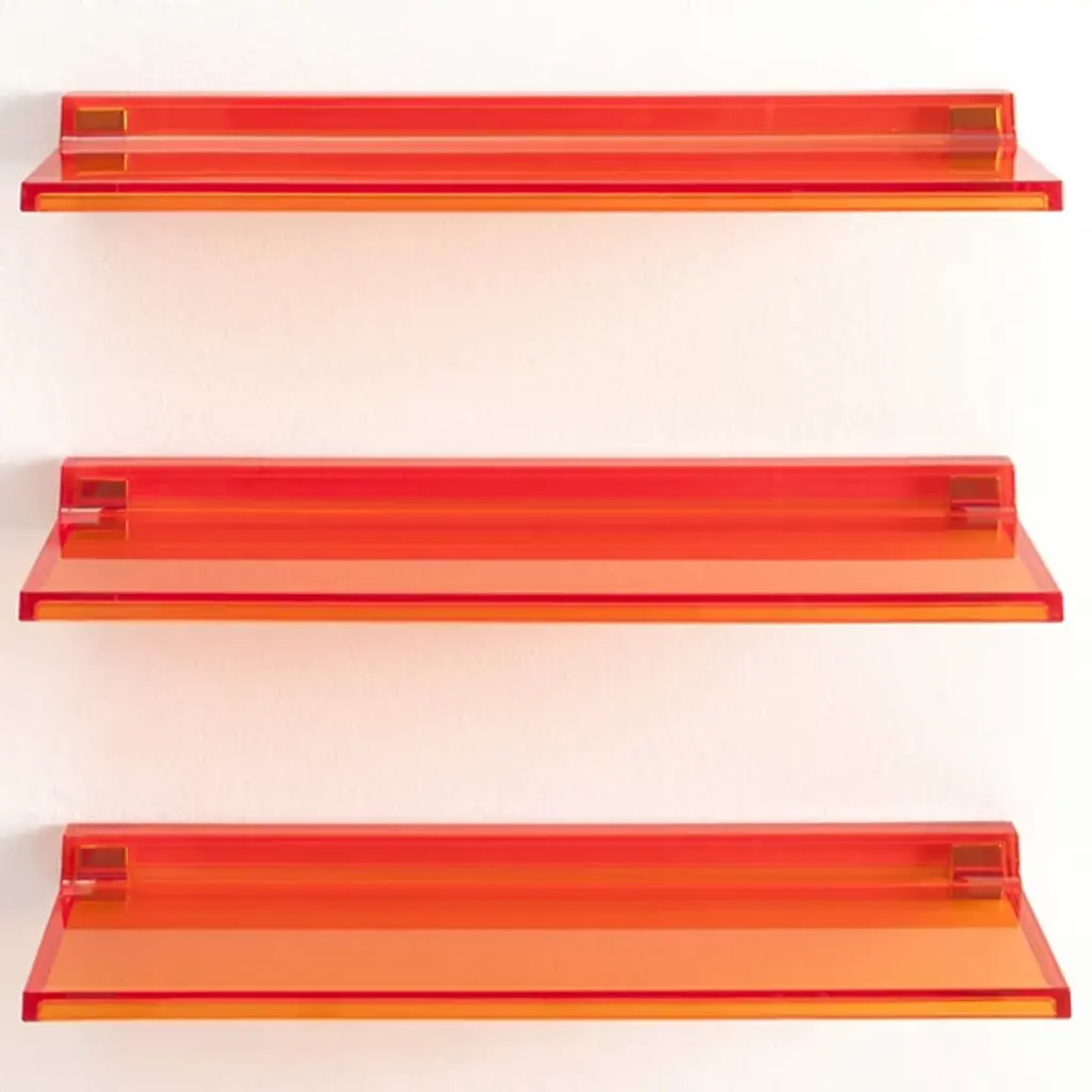 You can never have too many shelves. Made out of transparent PMMA plastic, the Kartell Shelfish Shelf Shelfish is easily mounted to the wall with special plugs and the shelf's back support ridge. The simplicity of the design together with the transparency of the available colors gives the shelf an unequaled sense of lightness, all by itself or arranged in multiples.