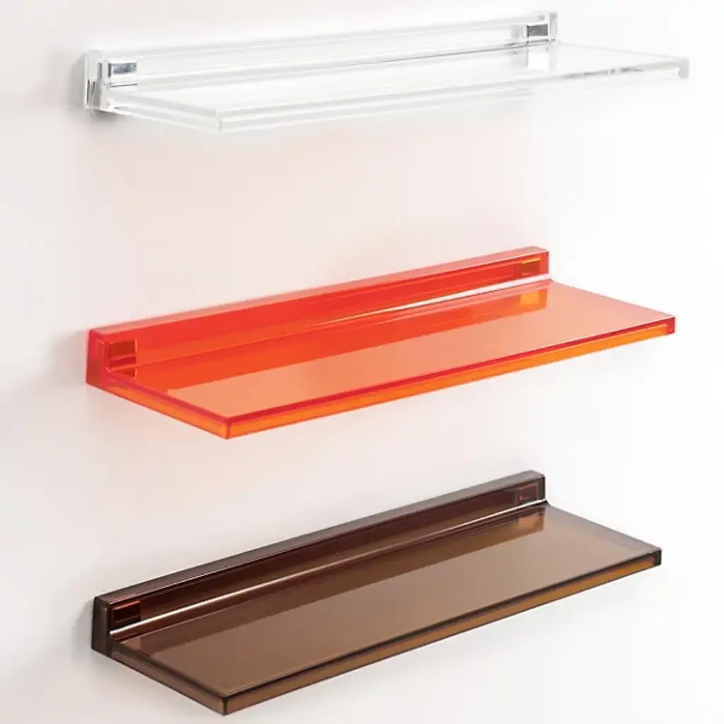 You can never have too many shelves. Made out of transparent PMMA plastic, the Kartell Shelfish Shelf Shelfish is easily mounted to the wall with special plugs and the shelf's back support ridge. The simplicity of the design together with the transparency of the available colors gives the shelf an unequaled sense of lightness, all by itself or arranged in multiples.