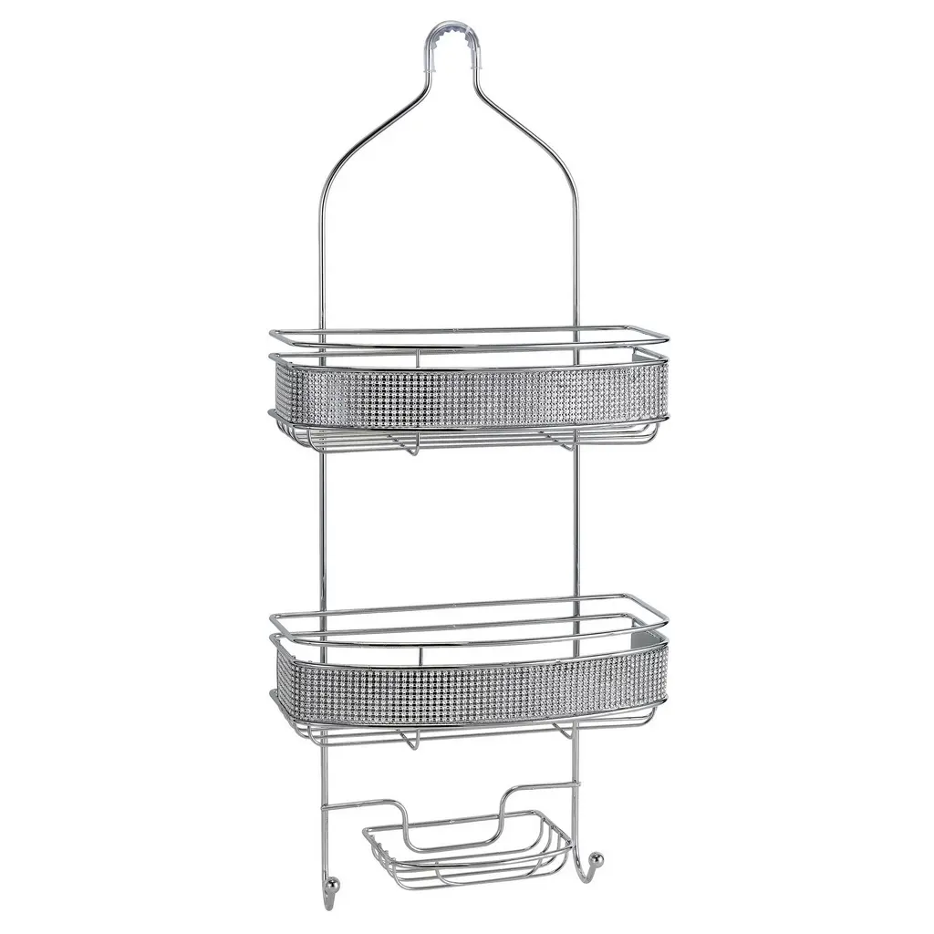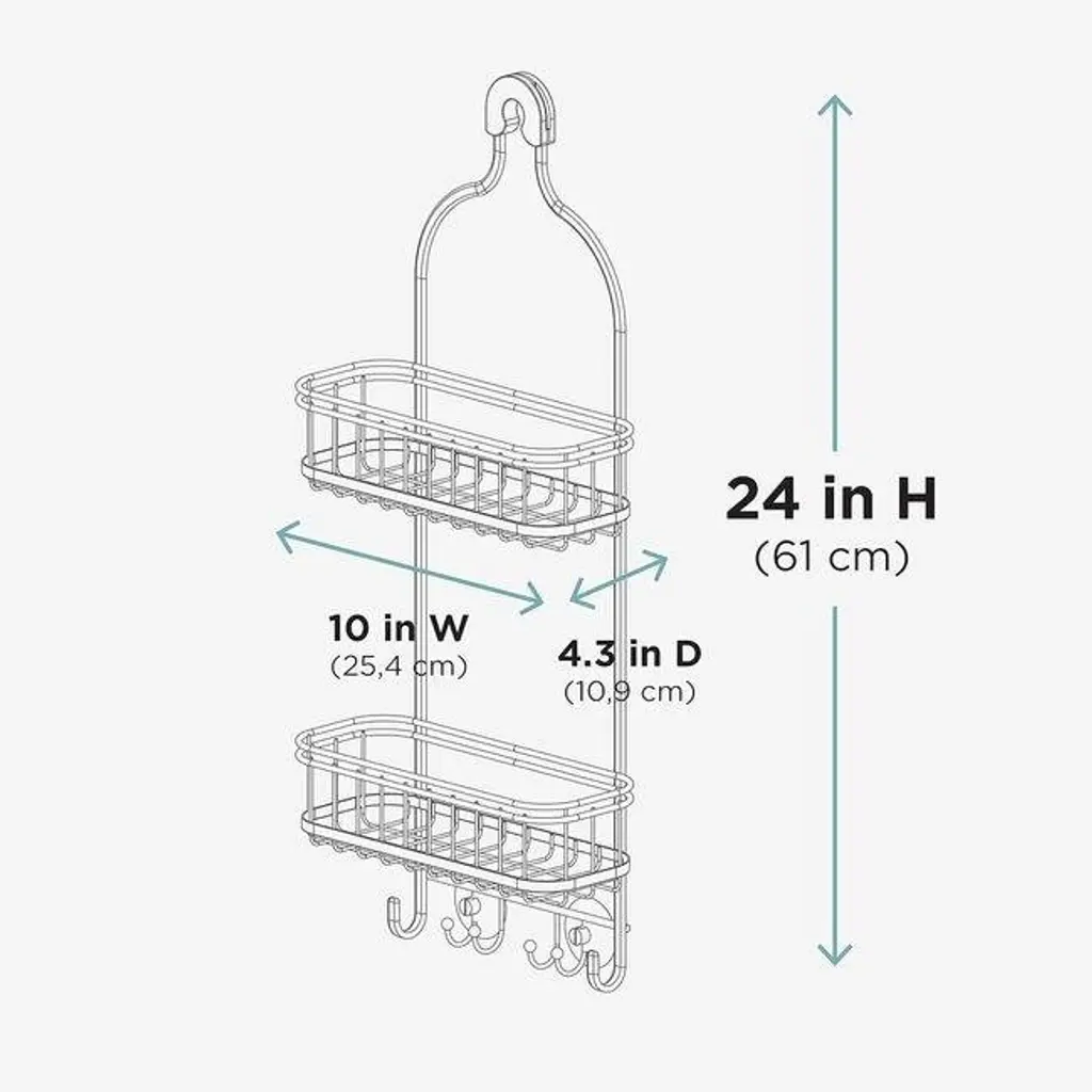SteelVALUABLE EXTRA WIDE SHOWER STORAGE SPACE: Rustproof shower caddy can be mounted on the shower head to provide more storage space for your bath productsEASY TO INSTALL: Includes non-slip ring and suction cups for simple installation without sliding and wobblingMaximizes storage space: stores large bottles and other bath productsHolds all your bath essentials: includes hanging storage rack and hooks for razors, tubs and moreRich finish prevents rusting, finish prevents rusting