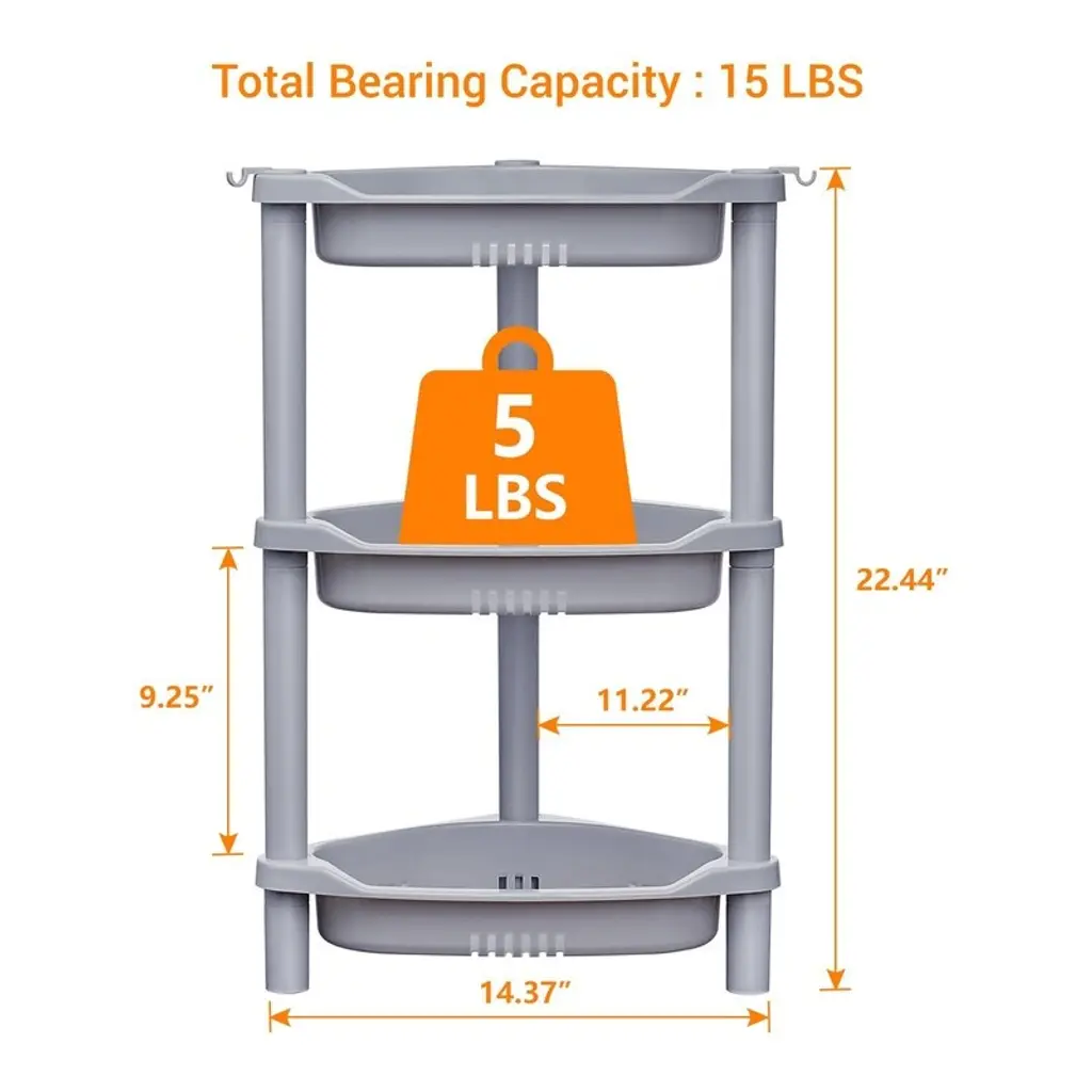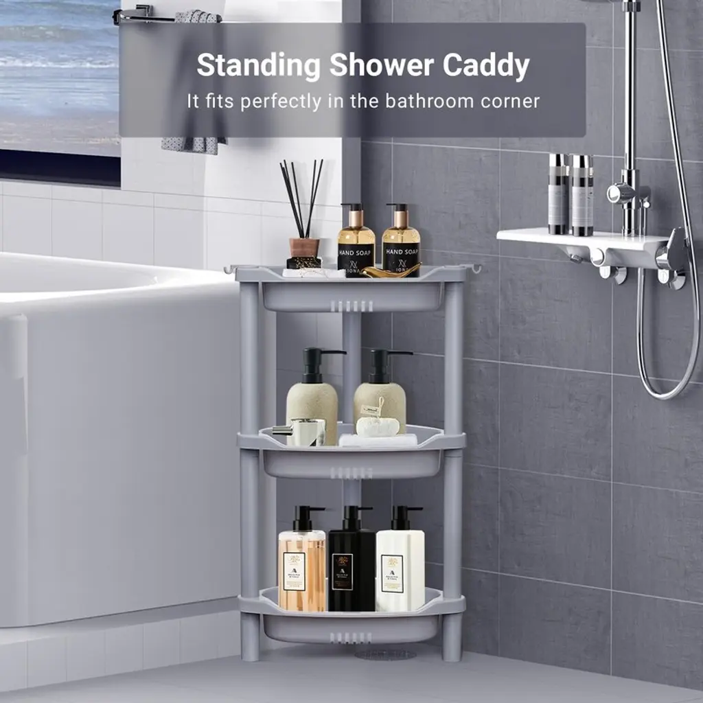 Shower Caddy Organizer Shelf Corner - Grey3-Tier - 13.32"d X 14.27"w X 22.4"h