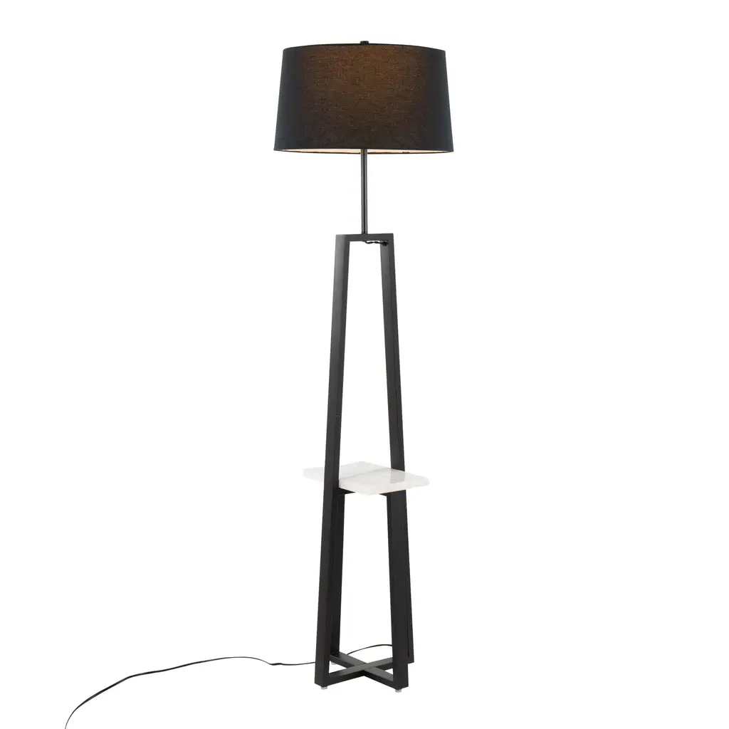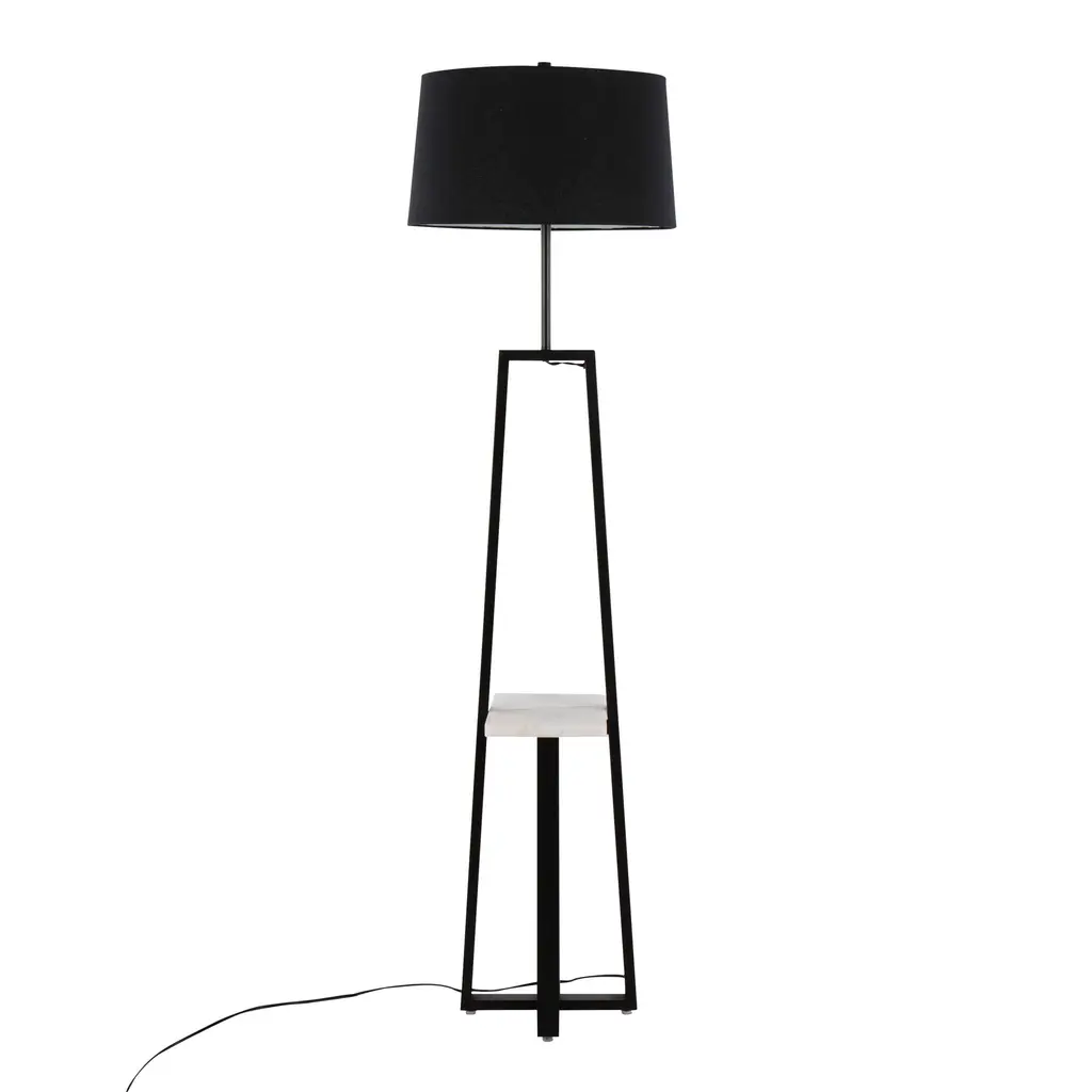 Full of modern elegance, the Pugo Shelf Floor Lamp will elevate your room in effortless style. Featuring a stunning geometrical metal base, a sleek marble shelf, and a linen shade. Perfect for any living space, office, or bedroom.Features:Dimensions: