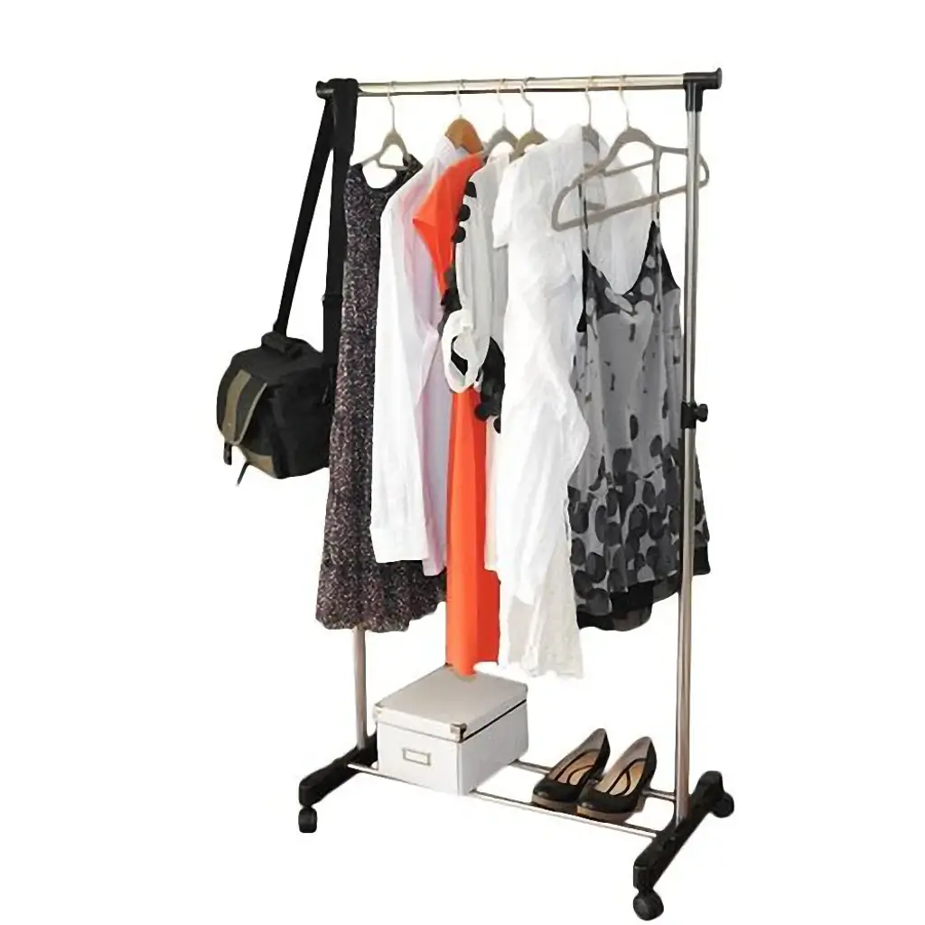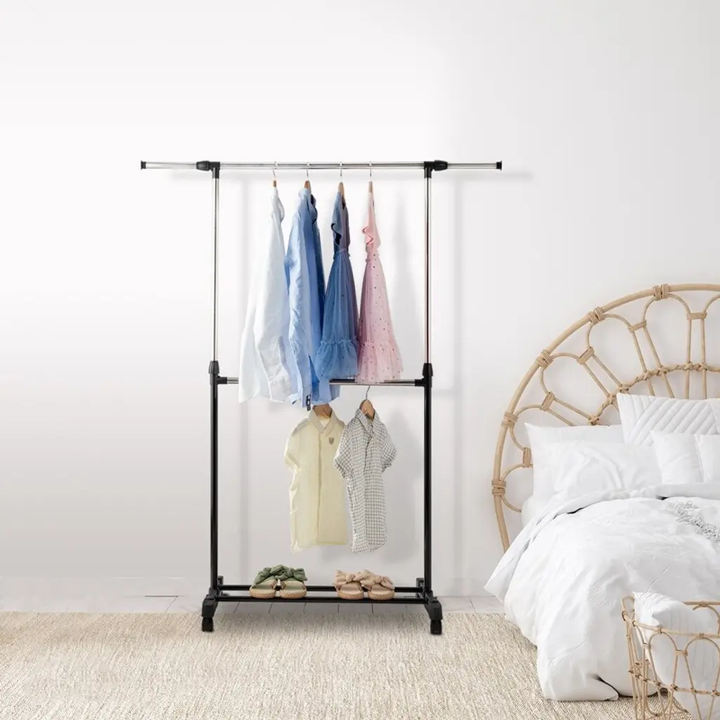 Single/dual-Bar Vertical & Horizontal Stretching Stand Clothes Rack With Shoe Shelf - Yj-02