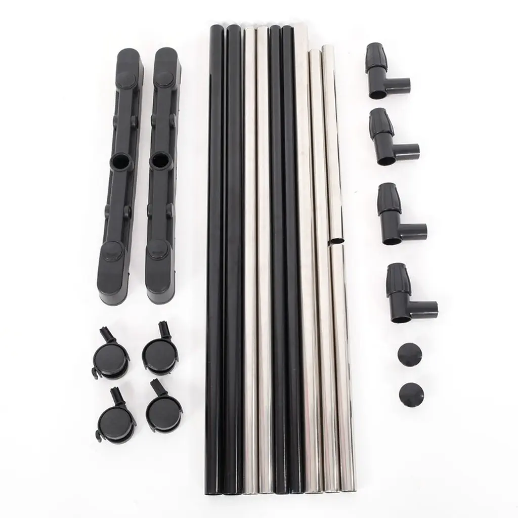 Features: 1. Good for indoor or outdoor use 2. A space-saving clothes rack is very important for the household with limit balcony room 3. Made of top-grade stainless steel and PP plastic, it offers better bearing capacity and a long lifespan 4. Designed into horizontal and vertical stretching for more clothes 5. You can easily retract it when not in use 6. Equipped with a shoe shelf for your convenient storage Specifications: 1. Material: Stainless Steel(Pipe) & PP Plastic(Pedestal & Connector) 2. Color: Black & Silver 3. Dimensions: (31.49 x 16.93)" / (80 x 43)cm (L x W) 4. Weight: 42.68oz/46.91oz/65.6oz/75.83oz Package Includes: 1 x Clothes Rack