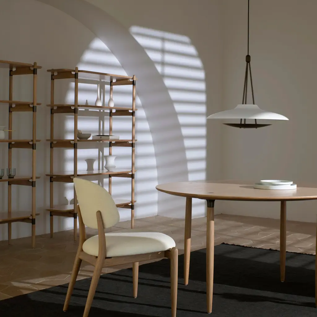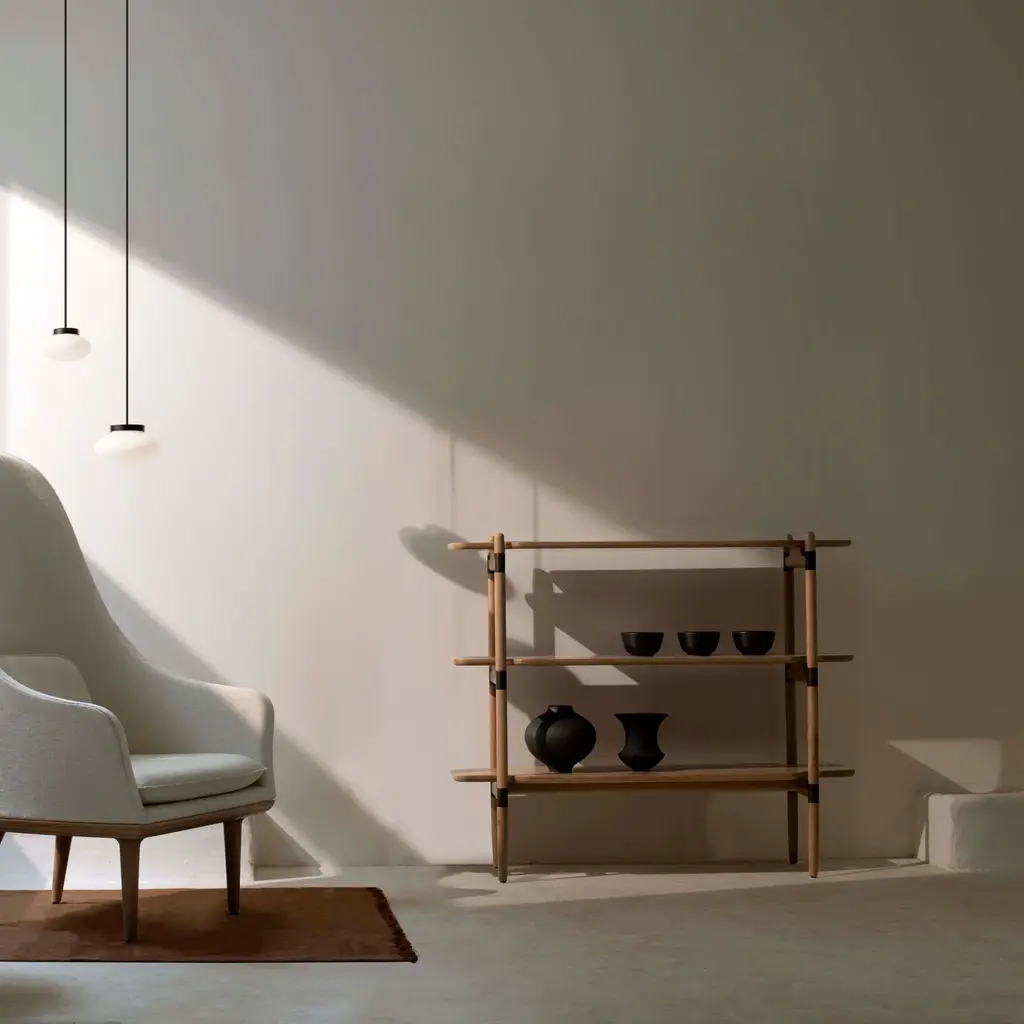 Slow from Space Copenhagen melds midcentury Danish Style and classic Japanese design in a handsome freestanding shelf. Inspired by a chair created for Restaurant 108 in the Danish capital, the spare silhouette highlights the beauty of the materials and the fine craftsmanship. Fashioned in a choice of solid ash or walnut with veneer shelf surfaces, the unit is available in 3 versatile sizes.