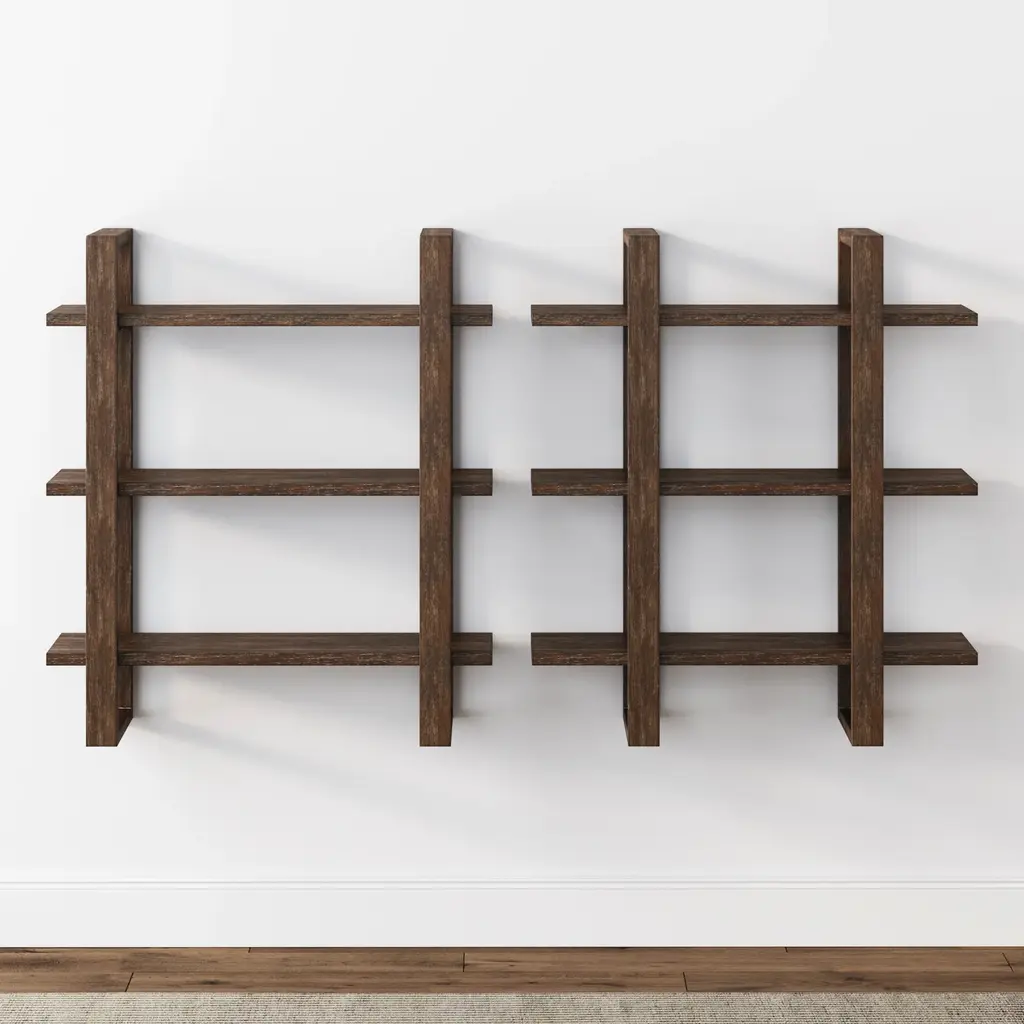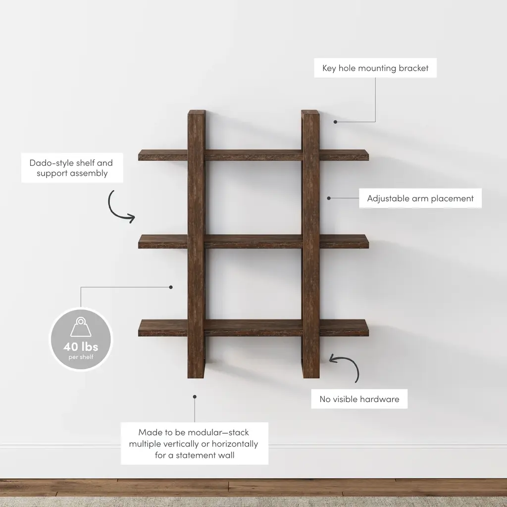 Meet Benji, our modern modular bookcase that’s sure to make a statement. Its three solid wood shelves and adjustable vertical arms (move them apart, or keep them close together) in a wire brushed dark brown finish give Benji a modern style with an open and airy feel. Get creative and hang multiple bookcases vertically or horizontally to build the statement bookcase wall of your dreams. There’s room for things of every shape and size on our Benji bookcase!