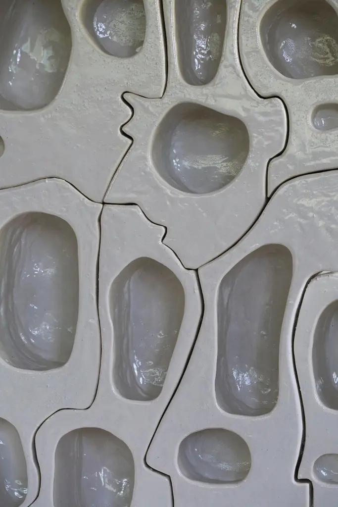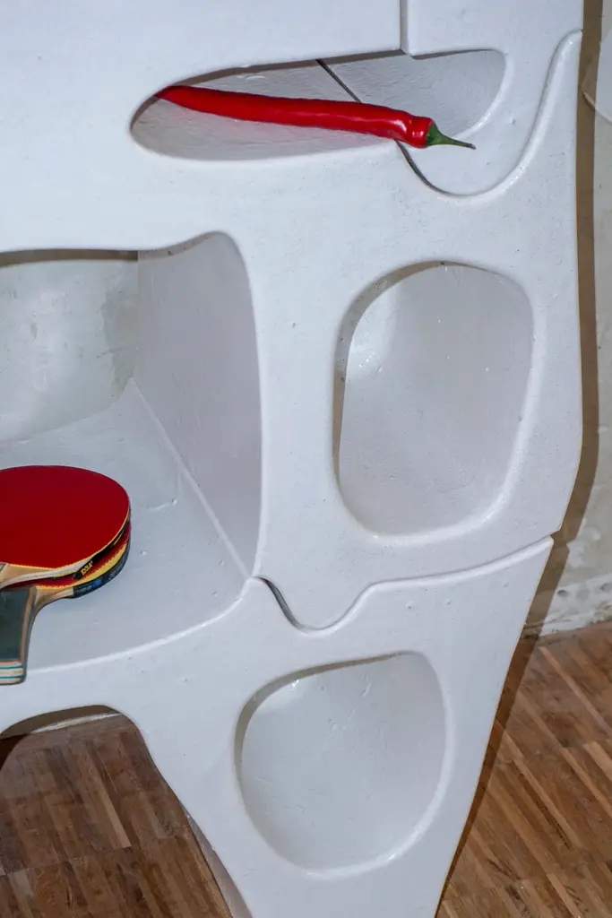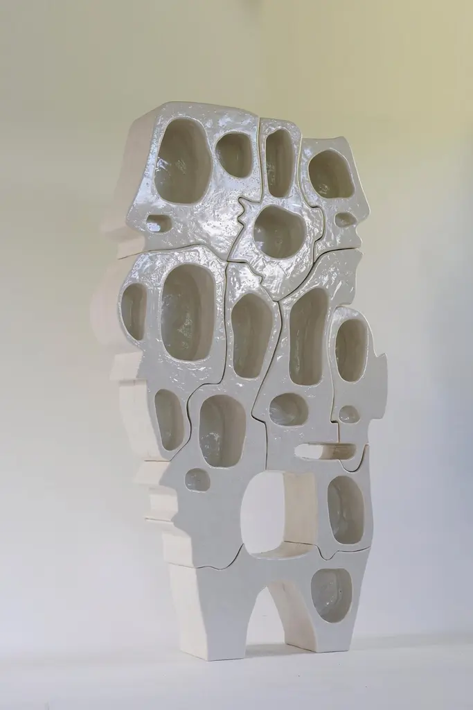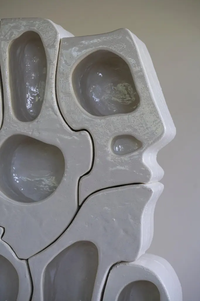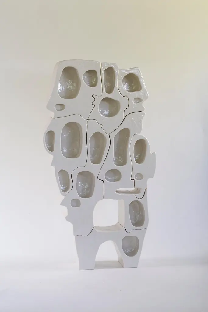 Spectator shelf by Freia AchenbachLimited Edition of 50Dimensions: D 110 x W 33 cm x H 200 cmMaterials: resin, sand, foamIf a sensory stimulus is offered to our perception, the spirit accepts this piece and complements what is missing. The amorphly shaped shelf is not only offering storage space, but stimulates the mechanism of projection and alludes to different faces that can only be recognized at second glance. The different pieces interlock in such a way that they stabilize each other and no further connecting part is necessary.Freia Achenbach is a Stuttgart-based object, furniture, and spatial designer. Her approach allows movement between disciplines and playfully explores material, form, and color. In her work Freia Achenbach experiments with a wide variety of materials and both traditional and innovative manufacturing processes.Her objects always tell a story and bring a certain ambiguity with them. All objects are handmade and/or created in collaboration with small manufactories. She produces objects as unique pieces as well as in small series and realizes commissioned works for customers. Since 2018 she has been collaborating with June Gschwander and Carlo Kurth under the joint design studio anima ona. She has completed projects with a range of clients including Fondation d´entreprise Martell, Kunstverein Böblingen e.V., GRDXKN structure printing, Studio Saje, Moncomble Paris, Centre Pompidou.