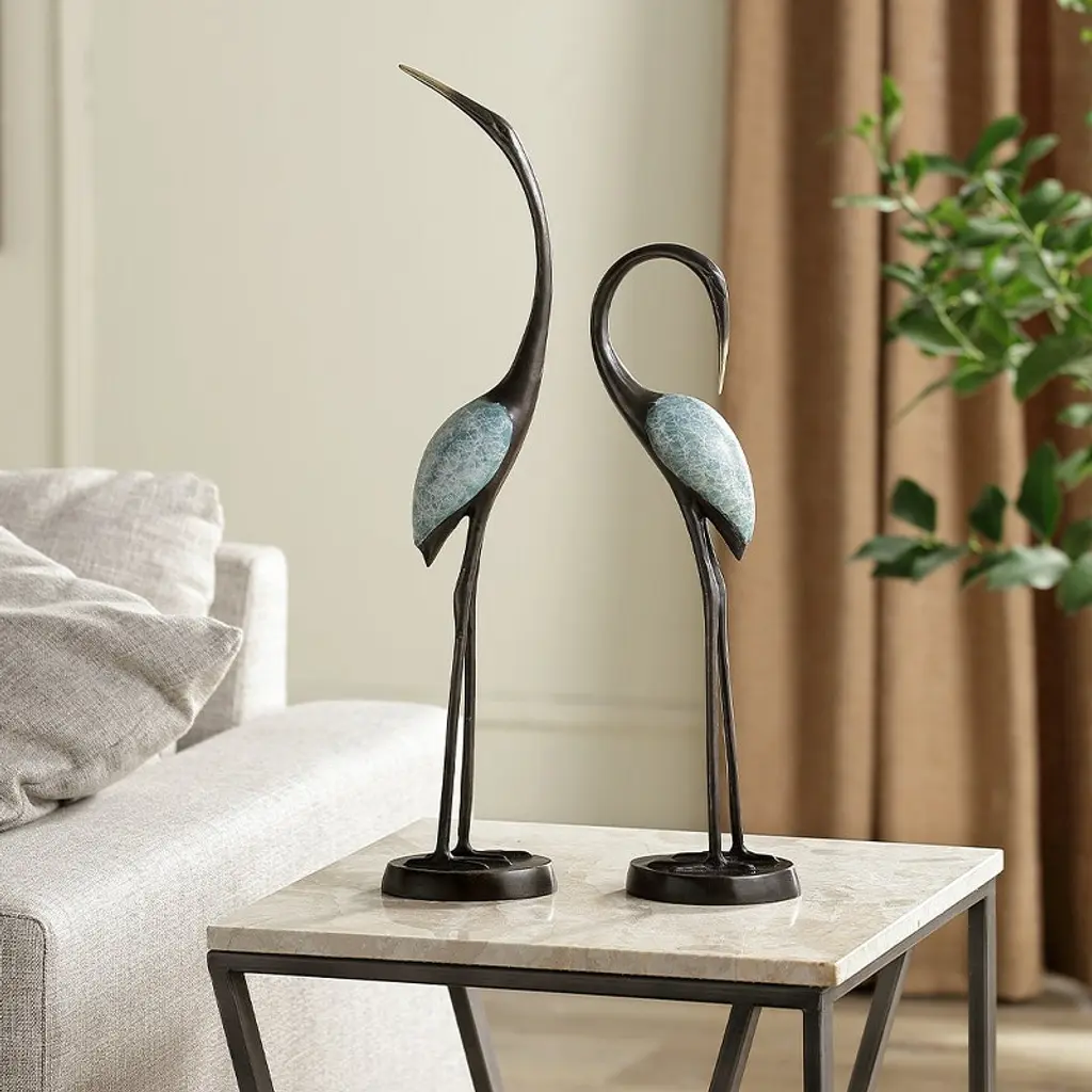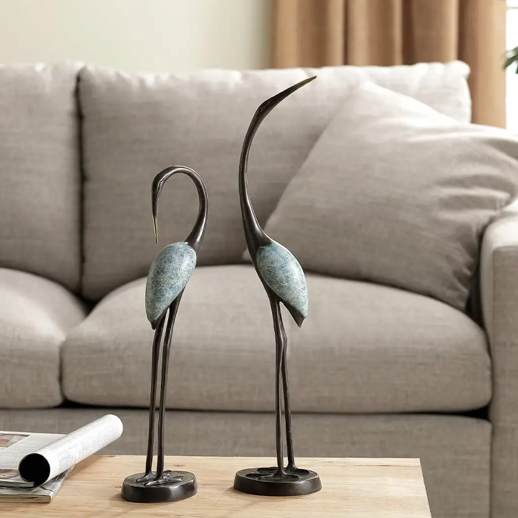 Spi Home Crane Song Brass Sculpture – 20" Elegant Bird Figurine With Polished Finish For Tabletop, Mantel, Or Shelf Display