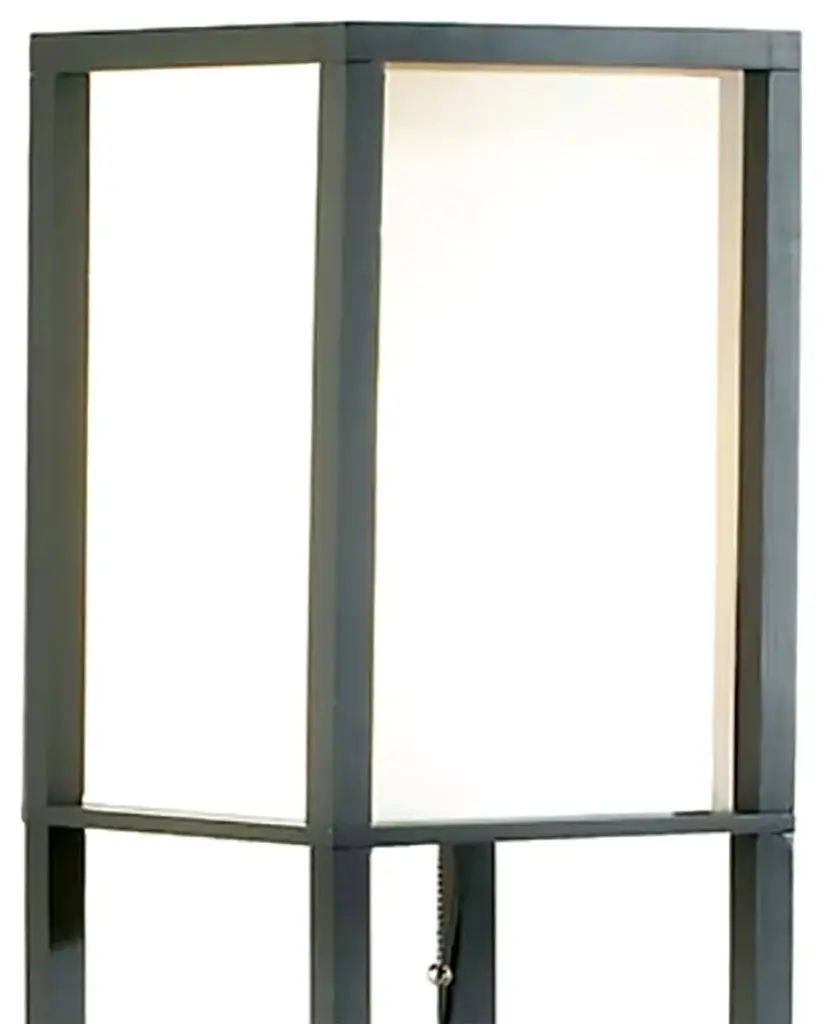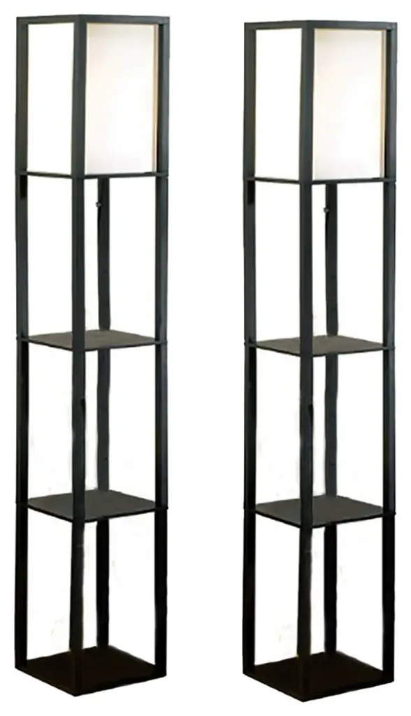 62.75 inch Tall, 10.25 inch Long, 10.25 inch WideMade of Metal with a White Fabric Shade and 3 Built-In Shelves So You Can Display a Your Favorite AccessoriesClassic Black Finish Adds a Modern Touch that Effortlessly Blends with a Variety of Decor StylesUL Approved and Accepts (1) Type A Bulb Up to 100 Watts Each (not included)Maximizes the Space of Smaller Rooms and Looks Great in CornersLighting can say a lot about your home and your personality, so illuminate your style with a pair of lamps that can bring more to the room than just light. In an eye-catching modern style with a white fabric shade, these classic black lamps effortlessly blend with a variety of decor styles, and feature three built-in shelves where you can display your decorative accessories, pictures, books and plants. The sleek and simple square design works great for bringing visual impact to a corner, and maximizes smaller spaces. Arrange them next to your favorite chairs or use in the bedroom as a stylish alternative to traditional nightstands. These 62.75 inch tall, 10.25 inch long, 10.25 inch wide metal floor lamps are UL approved and accept one Type A bulb up to 60 watts each, not included.