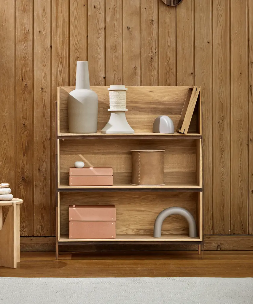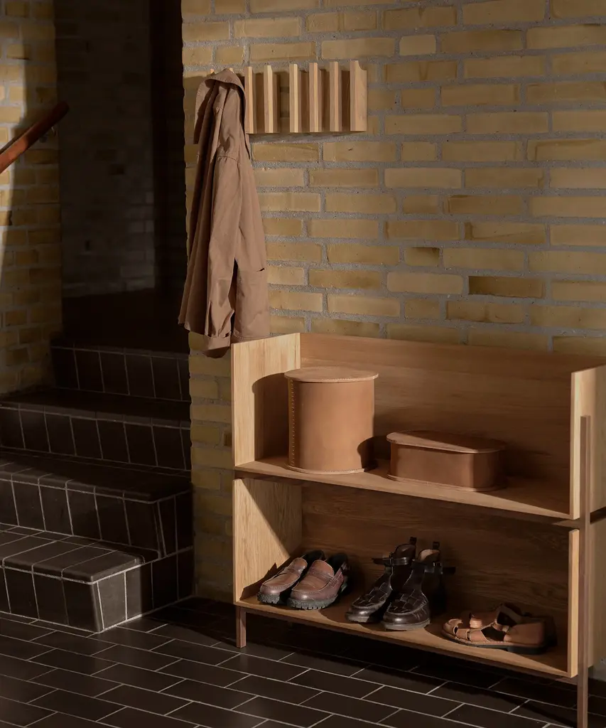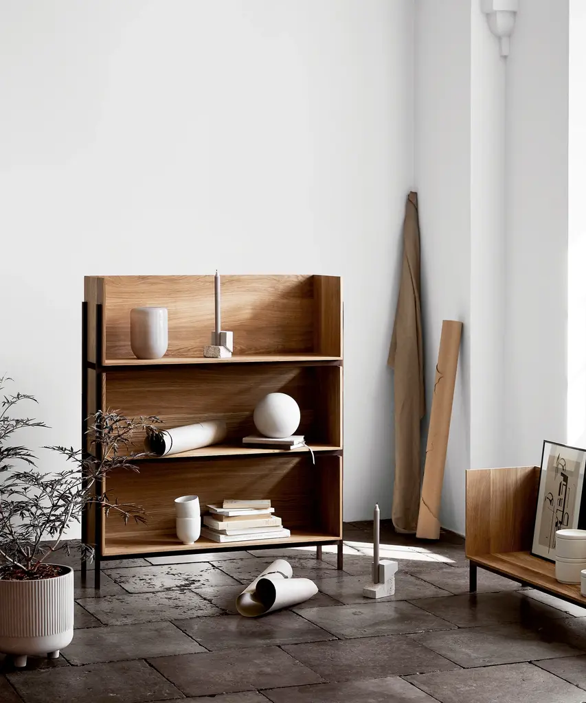 Modern functional stackable floor shelving for the contemporary home. The Stack Floor Shelves are a natural enlargement and design-development of the "Stack Storage Series" from Danish Design Studio Kristina Dam. The Stack Floor Shelf adds extra storage to your home. The Stack Floor Shelves can be stacked on top of each other to create an elegant shelving system. Designed by Kristina Dam Studio in Copenhagen, Denmark.
