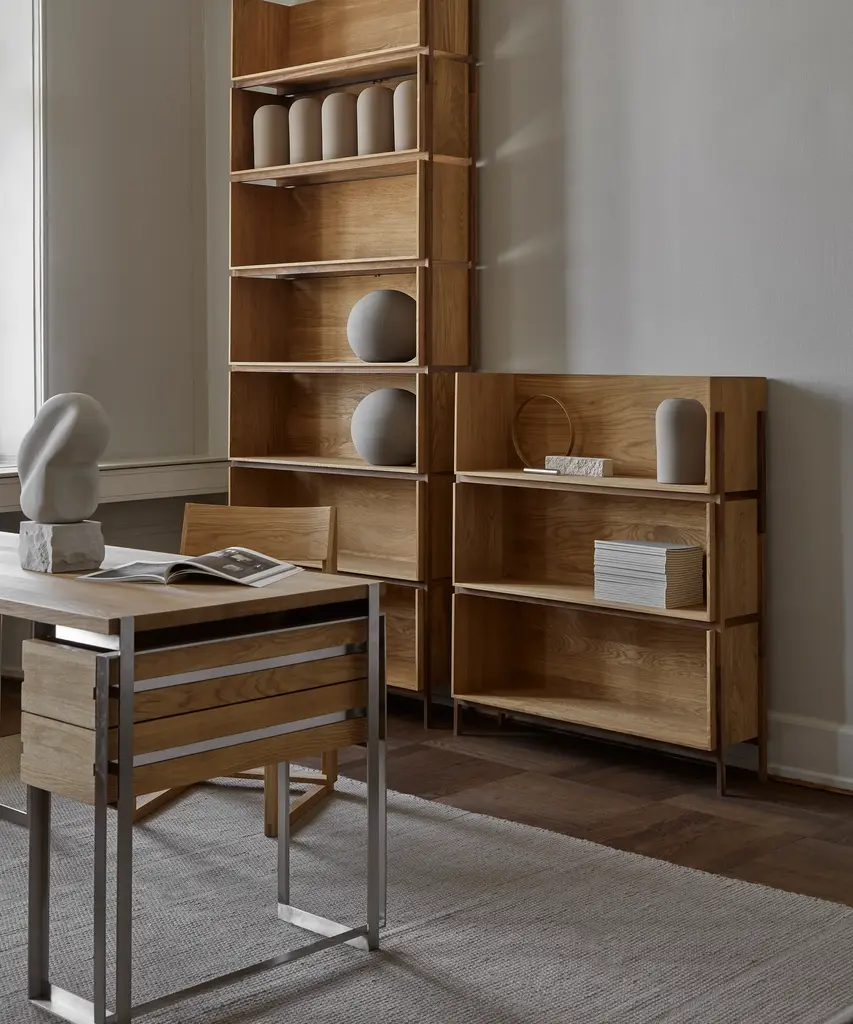Modern functional stackable floor shelving for the contemporary home. The Stack Floor Shelves are a natural enlargement and design-development of the "Stack Storage Series" from Danish Design Studio Kristina Dam. The Stack Floor Shelf adds extra storage to your home. The Stack Floor Shelves can be stacked on top of each other to create an elegant shelving system. Designed by Kristina Dam Studio in Copenhagen, Denmark.