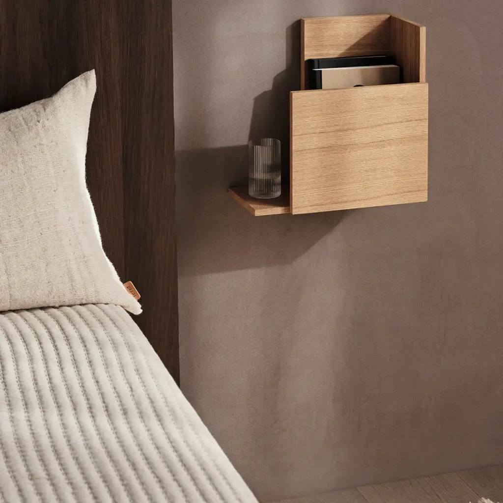 Capturing the essence of minimalist design, the Stagger Shelf is a unique storage solution for your home. The term 'stagger' perfectly encapsulates the arrangement of this shelf, where planks of varying sizes are artfully aligned in a zigzag formation, breaking away from conventional linear structures. The product is FSC™ certified crafted from oak veneer with an MDF core and serves as an ideal addition wherever a touch of extra storage or display space is required.