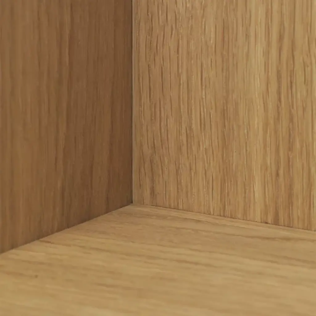 The Stagger Tall Shelf from Ferm Living extends the zigzag language of the Stagger collection into a vertical format with more pronounced height. Planks of varying lengths step outward and inward along the wall, breaking from the predictable horizontal lines of traditional shelving systems. This arrangement creates multiple display surfaces at different depths, allowing objects to sit at staggered intervals. Made from FSC Mix-certified oak veneer over an MDF core, the shelf turns storage into a compositional element where the architecture of the piece becomes as important as what it holds.