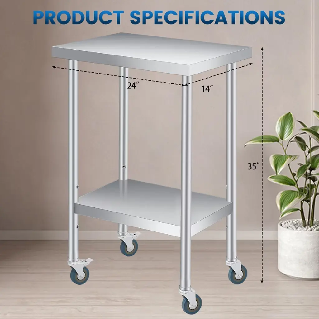 Stainless Steel Kitchen Table With Wheels, Utility Food Prep Table With Adjustable Shelf, Work Table For Restaurant, Bar, Butcher, 14x24in