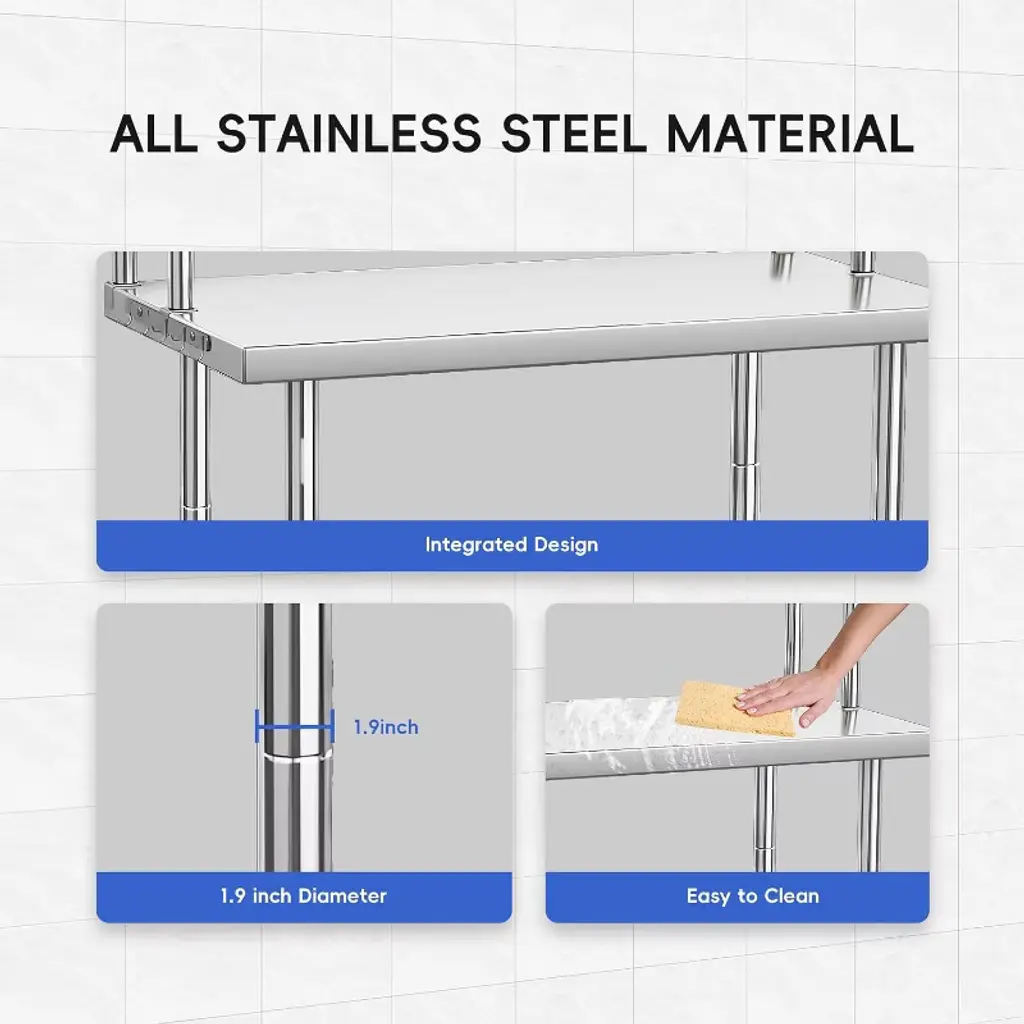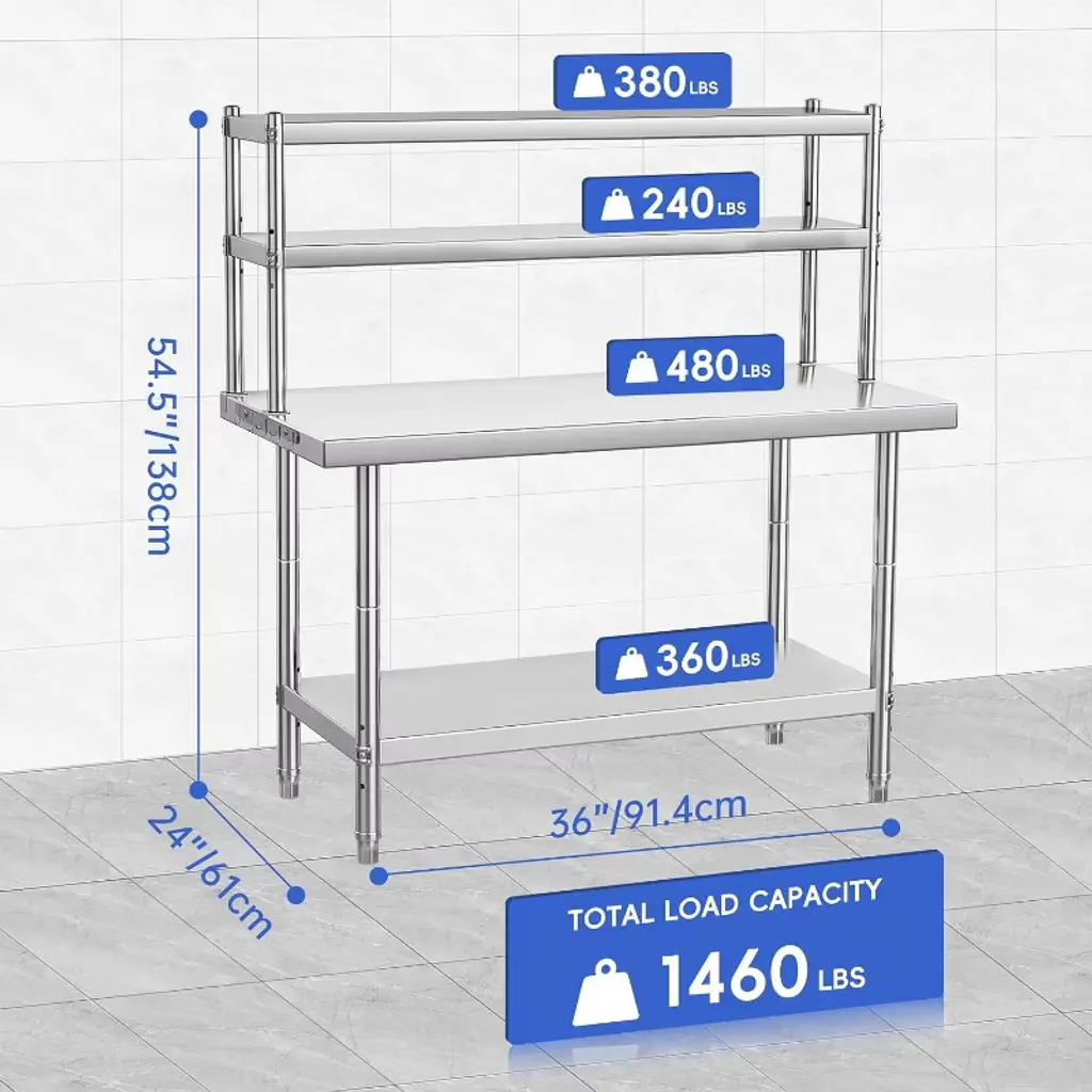 Stainless Steel Table With Overshelves, 36" X 24" Work Table With Shelf, Prep Table For Home Kitchen Restaurant Garage Warehouse