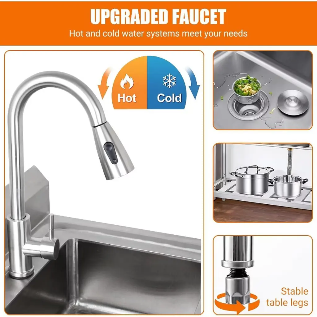 Stainless Steel Utility Sink, 20x20 Inch Free Standing Sink For Outdoor & Kitchen, Single Bowl Commercial Set With Faucet And Storage Shelf