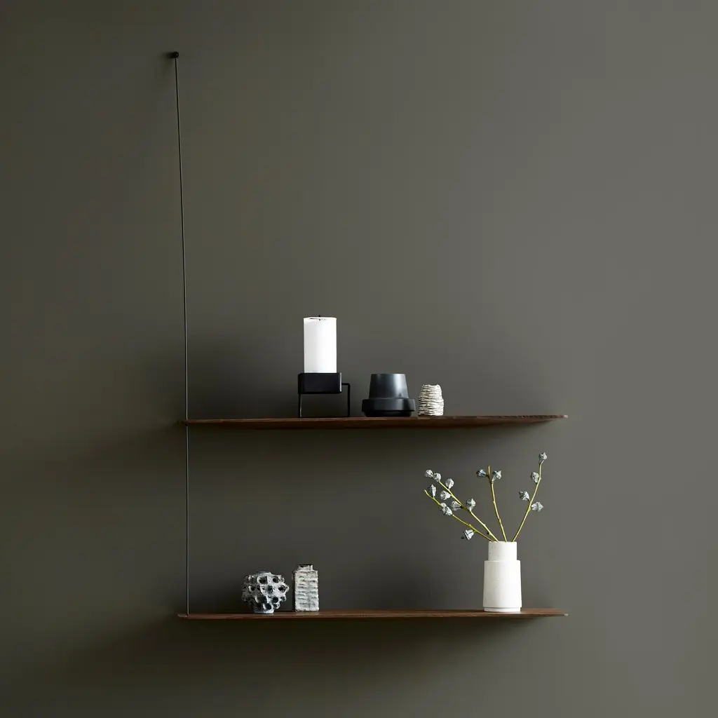 Designed to be visually light and pure with a clear structure, the Stedge Shelf from WOUD is an optical illusion, as the solid shelves appear to hang by a single thread. With its minimalist design and clean lines, this shelving system can be elongated with optional add-on shelves making it the perfect fit for at-home offices, bedrooms, and living spaces alike.Highlights