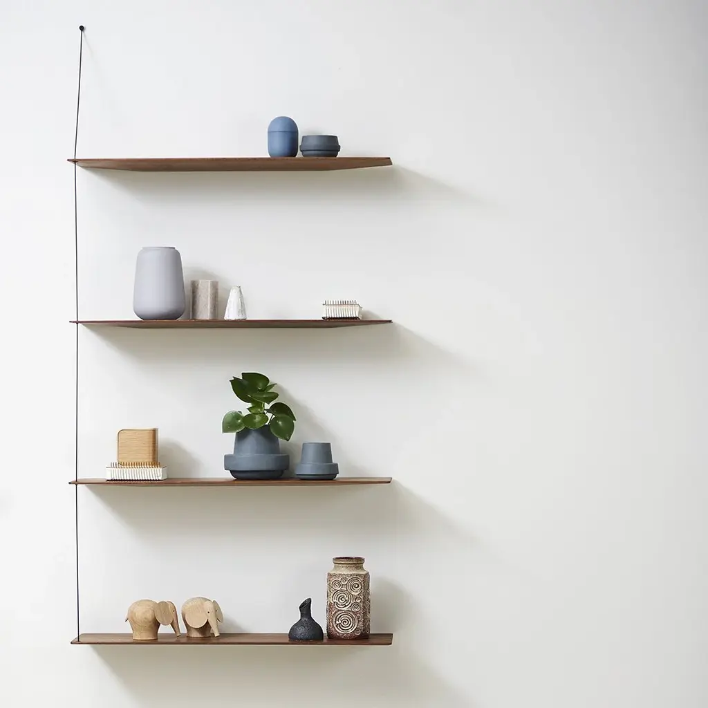 The main idea behind Stedge was to create a storage place for objects on the wall to gain more free space in the floor area. With its light expression and fine edges, Stedge will be perfect match for any room. Stedge comes in a box with two shelves in either solid oak or smoked oak. It is possible to add additional shelves to create your own unique stage. Included is a long and a short top metal wire. The shelf measures 4mm at its thinest (front and sides) and 20mm at its thickest (back).