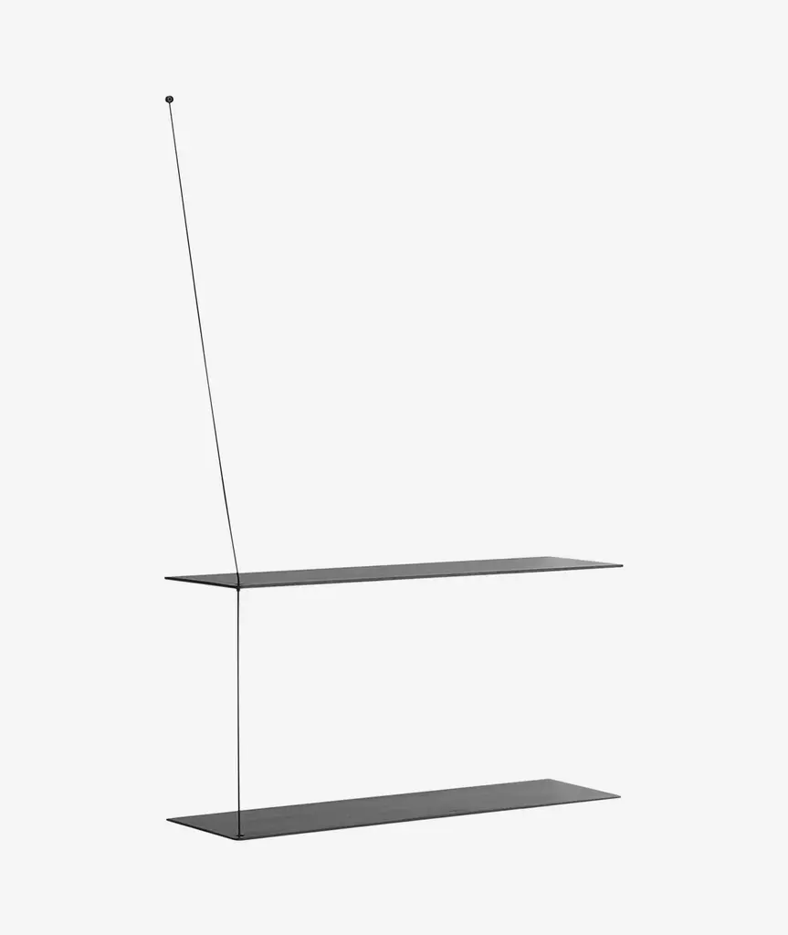 Stedge is all about lightness, purism and a clear structure. The subtle design is an optical illusion as the solid shelves seem to hang by a thread. With its light expression and fine edges, Stedge will be a perfect match for any room. Extend the shelving system with more shelves and choose either a long or short top wire to make it a perfect fit on your wall. Both short and long wires included. Shelves available in two widths.