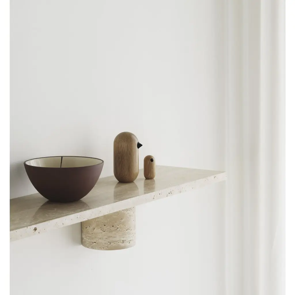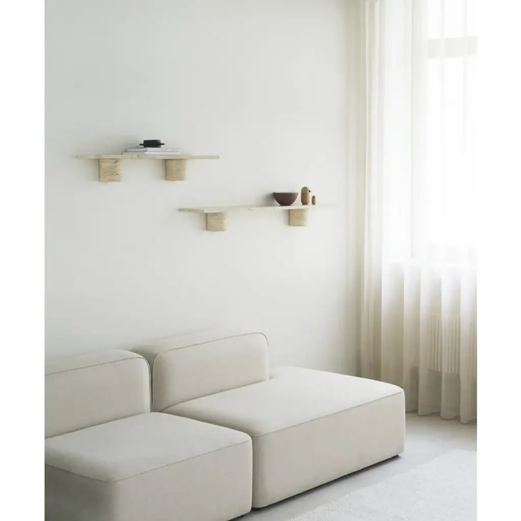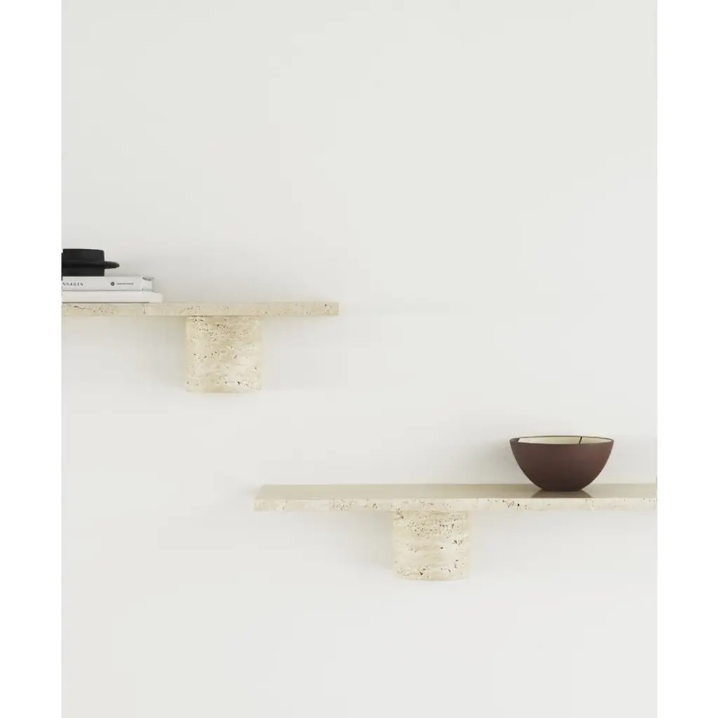 Normann Copenhagen's Sten shelf captivates with its clean lines and clear yet distinctive design. Made from a stone slab with gently rounded brackets, the wall shelf blends simplicity with sophistication. The natural travertine adds a special touch with its one-of-a-kind patterns and color variations that make each piece truly individual. The Sten shelf brings a hint of luxury to any space, whether it’s the living room, bedroom or hallway, offering both practical storage and an elegant design element.