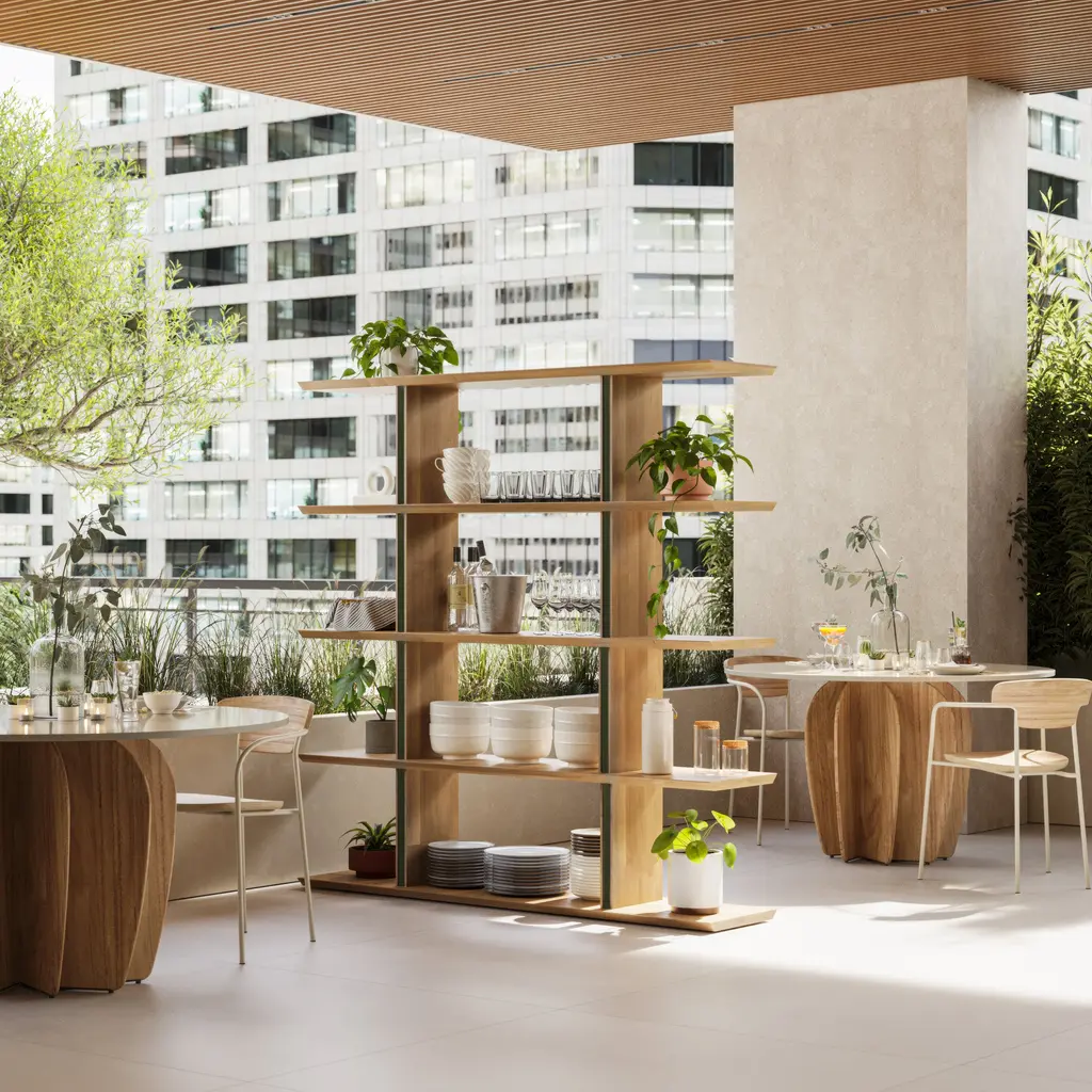 In a 5-shelf configuration, Valencia maker Punt offers striking display-cum-storage inspired by its renowned Stockholm sideboard. To the wide array of custom oak and walnut finishes, Mario Ruiz' design adds gleaming metallics as a final embellishment as well as optional sliding panels that can hide objects and lend light and shadows.