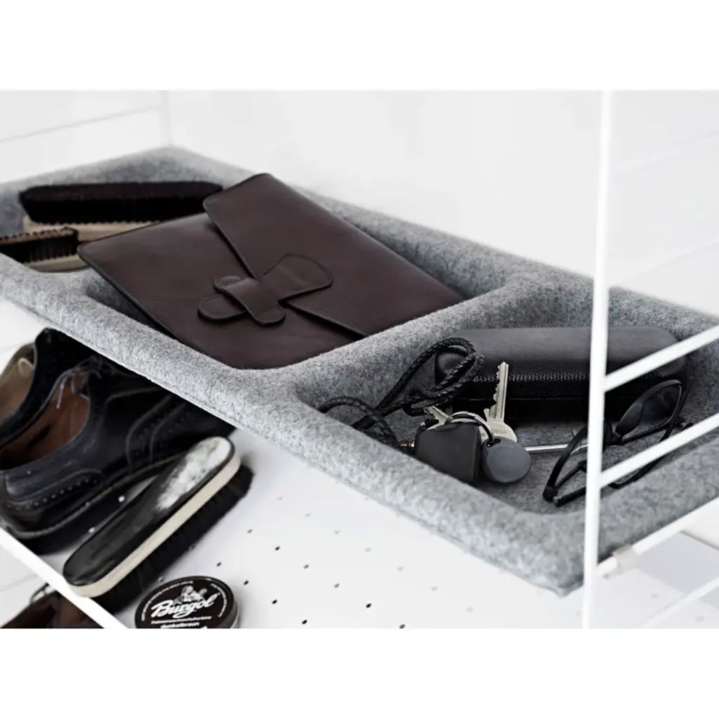 The String bowl shelf can be added to the String System floor panels. The shelf is divided into 3 compartments, and it's suitable for storing and sorting all the small items that you might have laying around the household. The shelf is 30.71 in (78 cm) wide and 11.81 in (30 cm) deep. String System is a flexible shelving system that Swedish architect Nils Strinning designed in 1949. The signature ladder-like side panels can be combined with shelves, magazine shelves, work desks, folding tables, chests and cabinets to form a system that best suits your needs. The timeless and minimalist design of String System is perfect for both contemporary homes and offices.