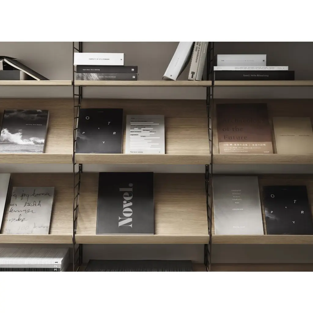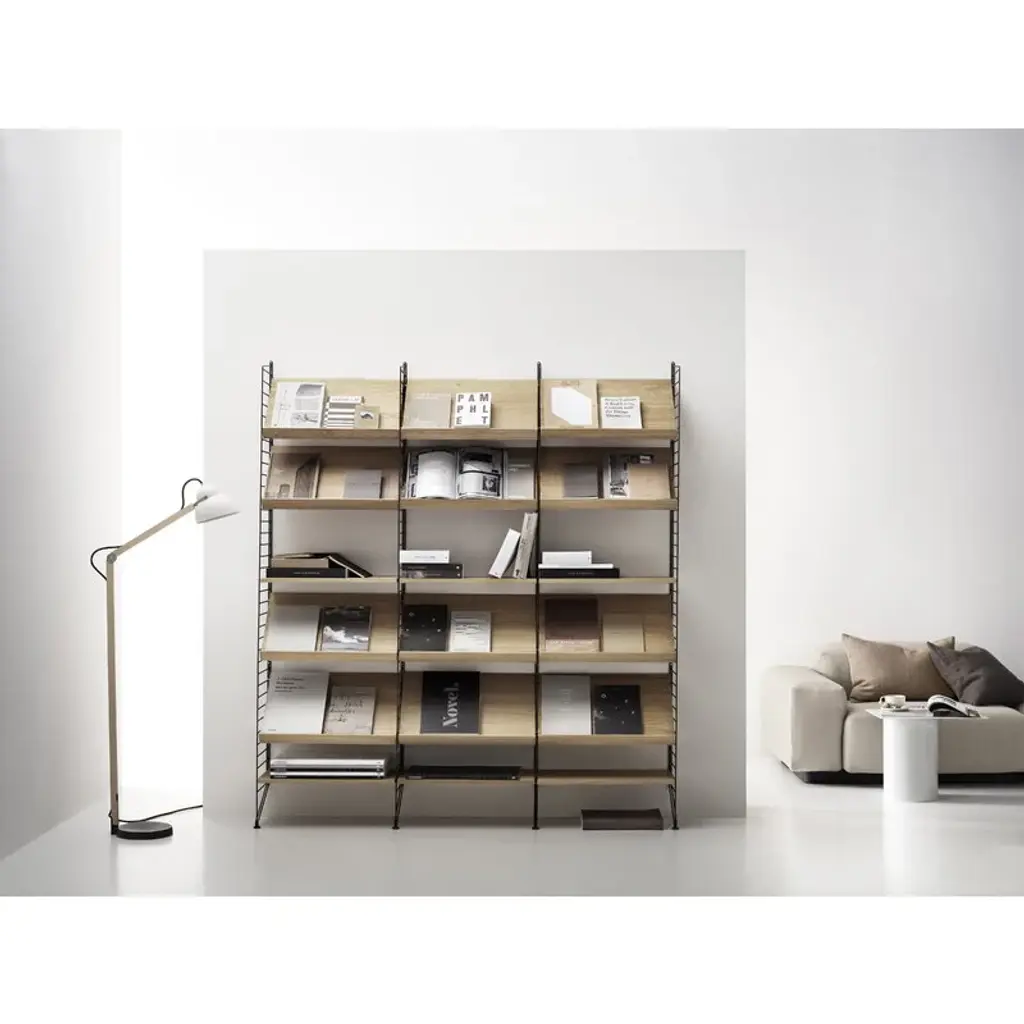 The String magazine shelf is perfect for displaying your favorite magazines and books and compatible with 11.81 in (30 cm) wide String System side and floor panels. String System is a flexible shelving system that Swedish architect Nils Strinning designed in 1949. The signature ladder-like side panels can be combined with shelves, magazine shelves, work desks, folding tables, chests and cabinets to form a system that best suits your needs. The timeless and minimalist design of String System is perfect for both contemporary homes and offices.