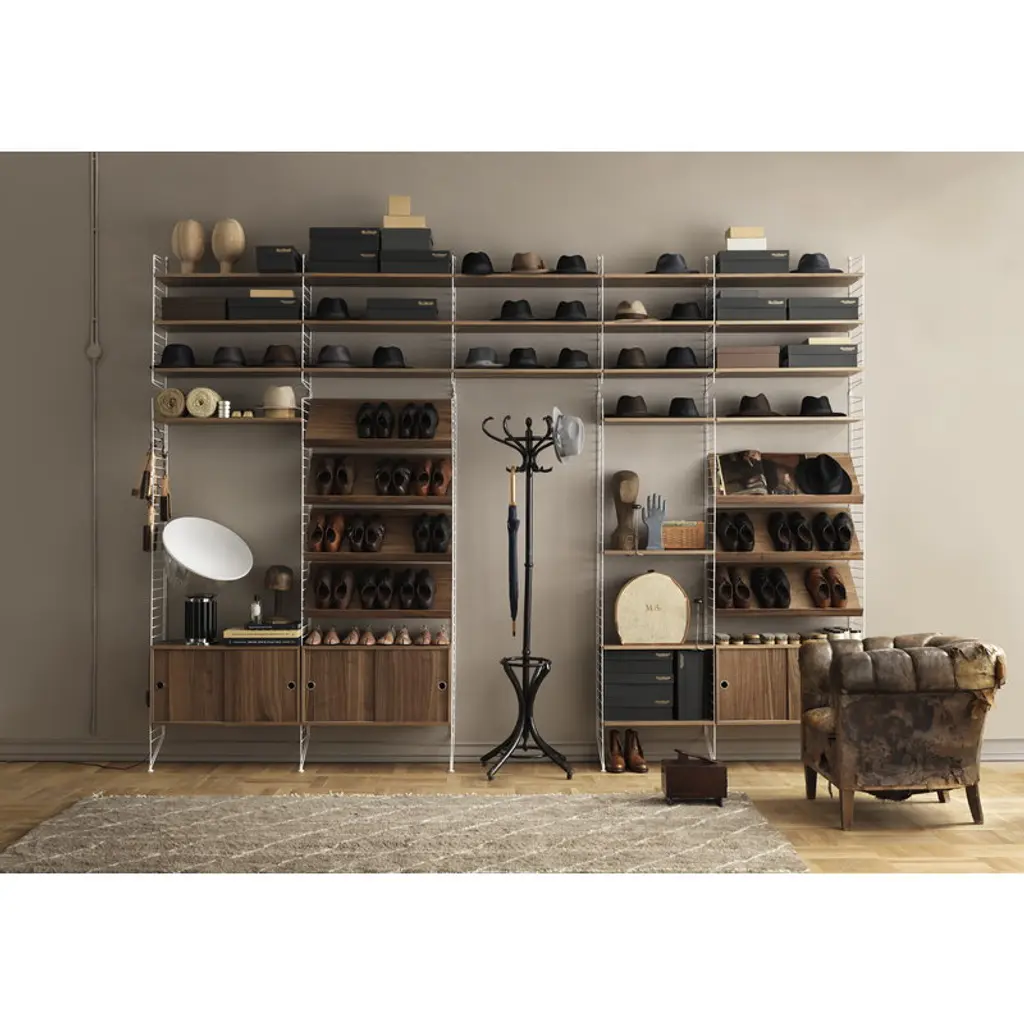 This String shelf is designed to be used with the String System panels measuring 11.81 in (30 cm) in width. Sold in a set of three. String System is a flexible shelving system that Swedish architect Nils Strinning designed in 1949. The signature ladder-like side panels can be combined with shelves, magazine shelves, work desks, folding tables, chests and cabinets to form a system that best suits your needs. The timeless and minimalist design of String System is perfect for both contemporary homes and offices.