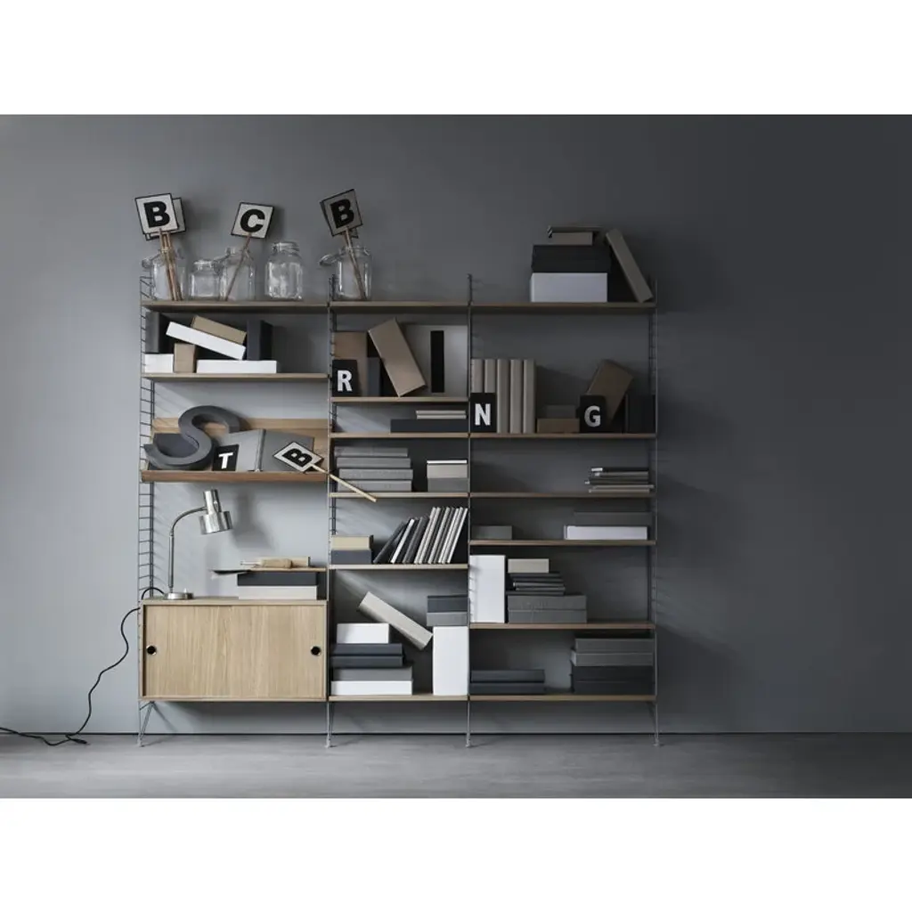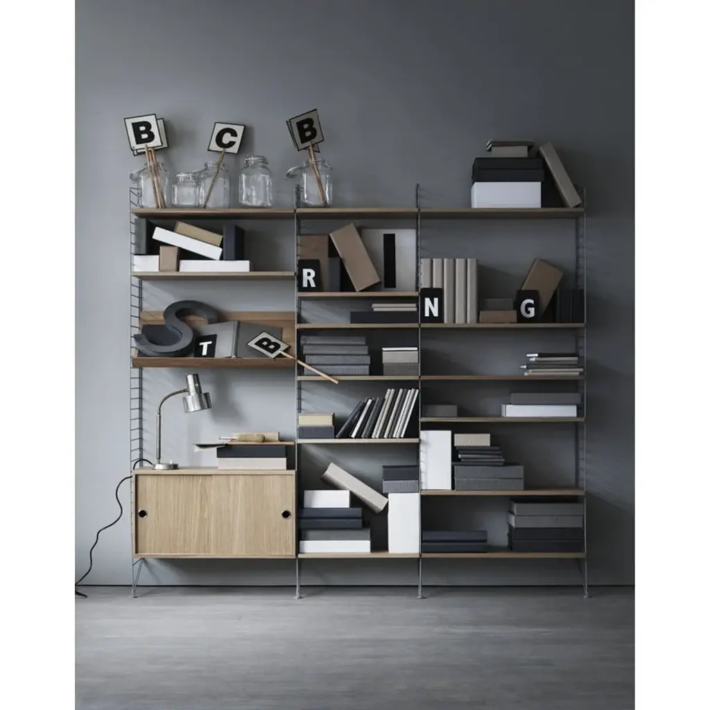 This String shelf is designed to be used with the String System panels measuring 11.81 in (30 cm) in width. Sold in a set of three. String System is a flexible shelving system that Swedish architect Nils Strinning designed in 1949. The signature ladder-like side panels can be combined with shelves, magazine shelves, work desks, folding tables, chests and cabinets to form a system that best suits your needs. The timeless and minimalist design of String System is perfect for both contemporary homes and offices.