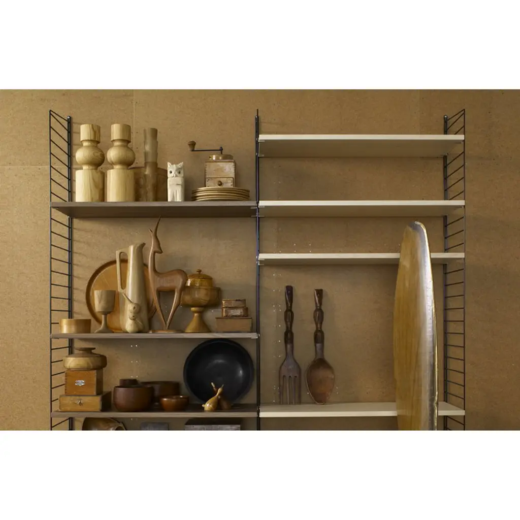 This String shelf is designed to be used with the String System panels measuring 11.81 in (30 cm) in width. Sold in a set of three. String System is a flexible shelving system that Swedish architect Nils Strinning designed in 1949. The signature ladder-like side panels can be combined with shelves, magazine shelves, work desks, folding tables, chests and cabinets to form a system that best suits your needs. The timeless and minimalist design of String System is perfect for both contemporary homes and offices.